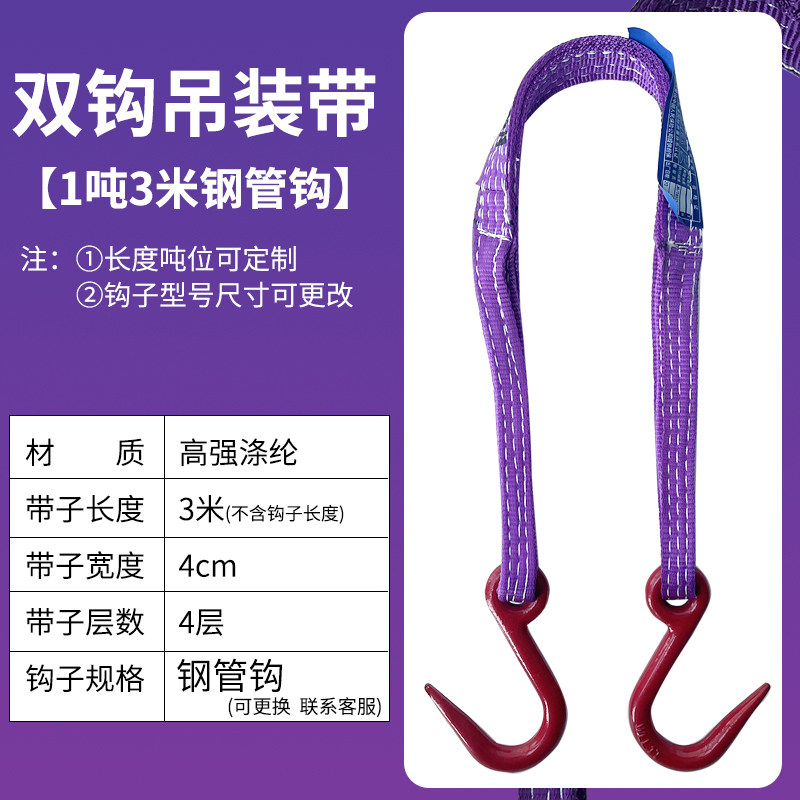 定制金昌龙双钩扁平吊装带两头扣吊带钩叉车起重吊钩绳吊车吊装绳
