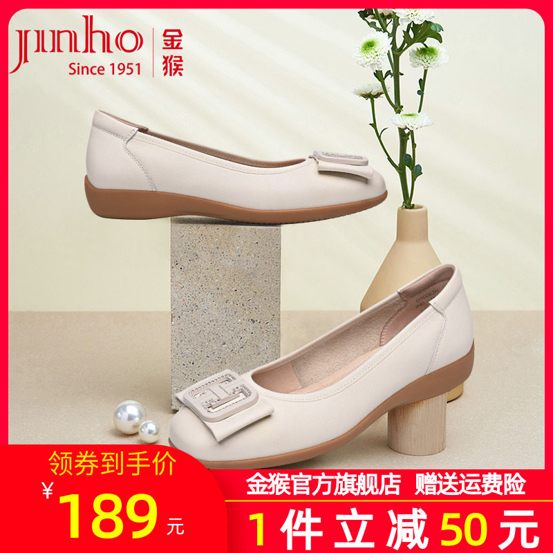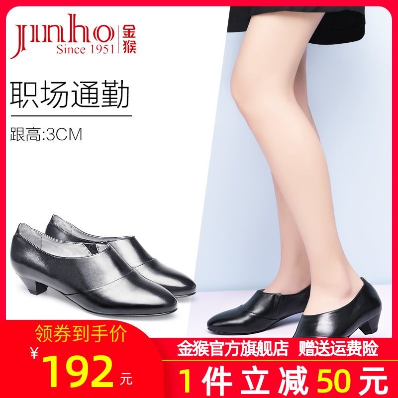 金猴官方旗舰店女单鞋春款通勤圆头中粗跟真皮办公职业皮鞋工作鞋
