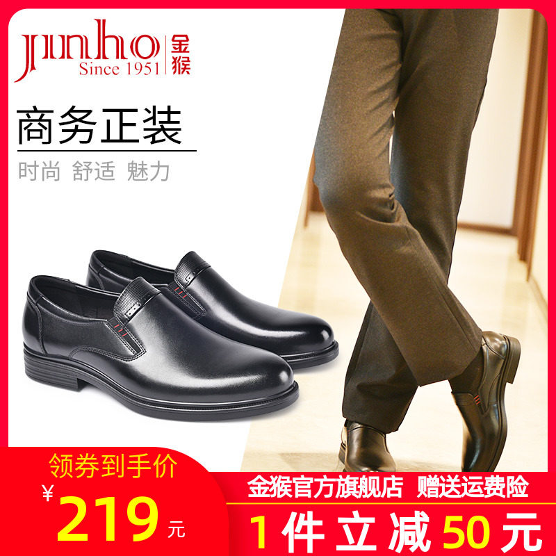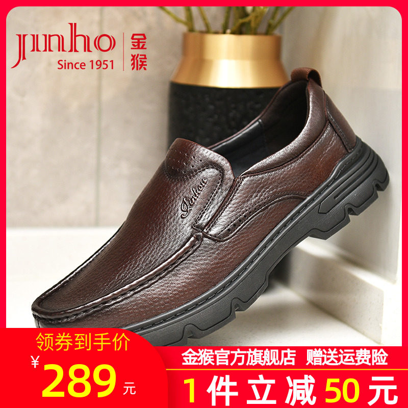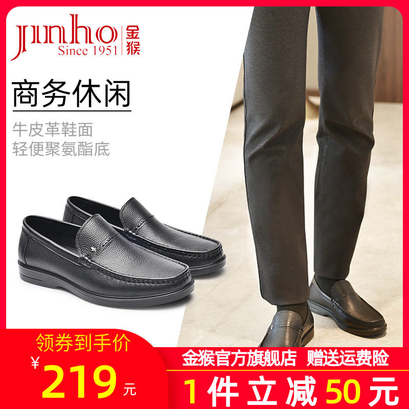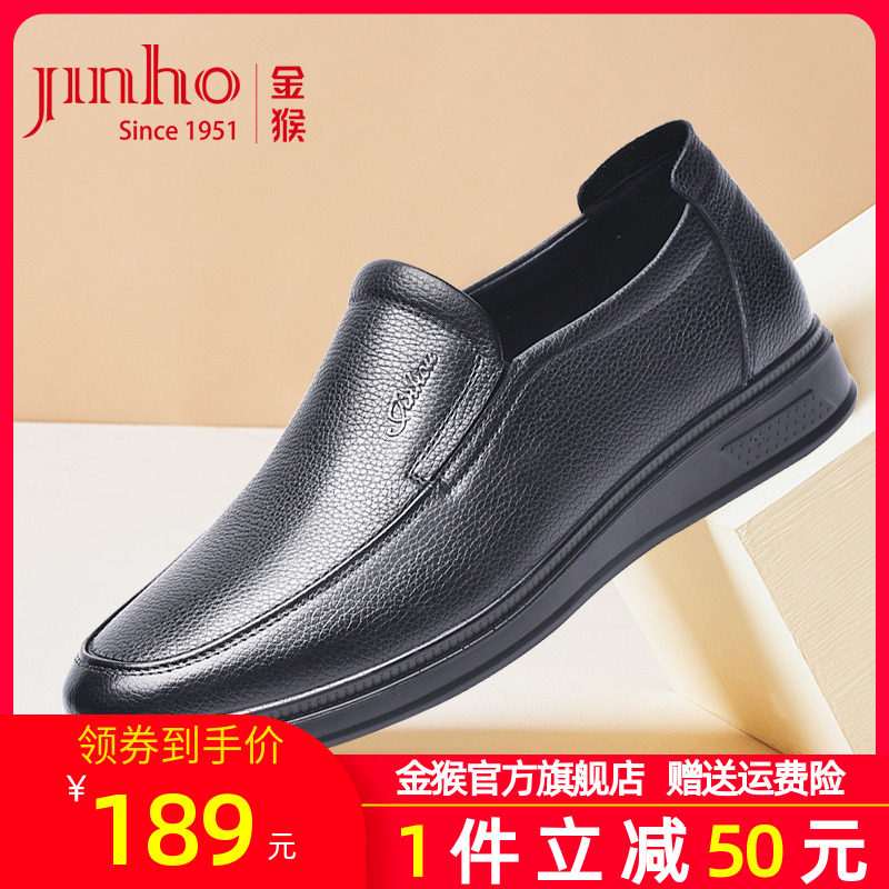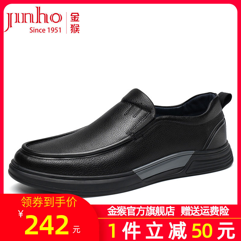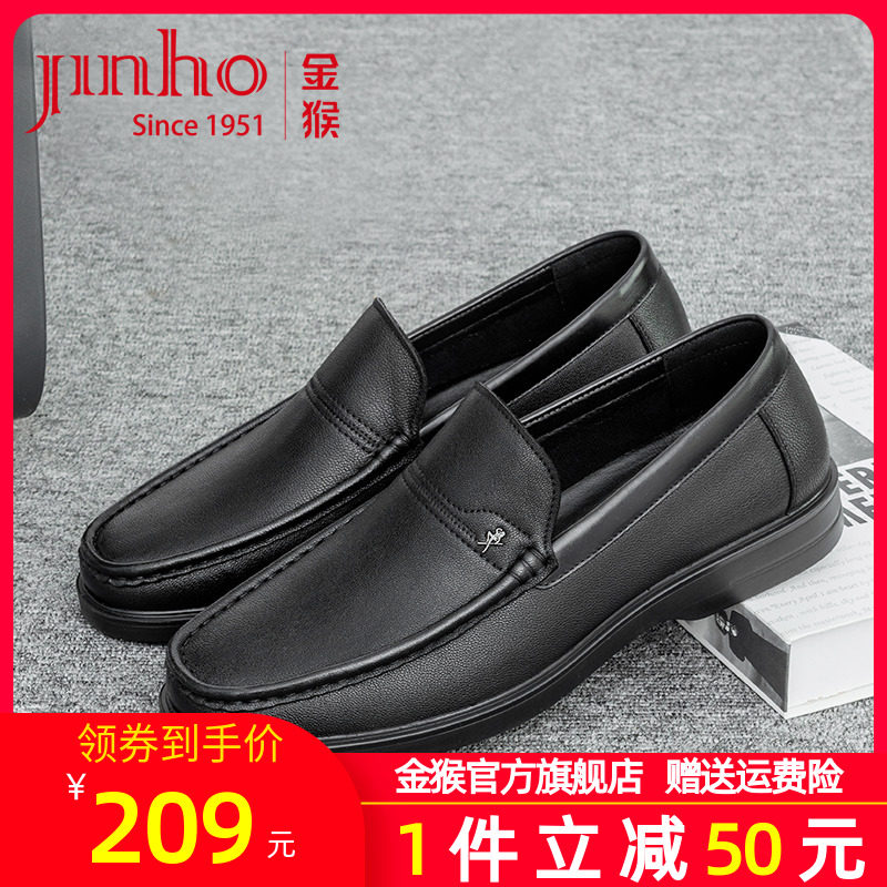 金猴官方旗舰店春秋加绒商务休闲男鞋子新款头层牛皮套脚皮鞋正品