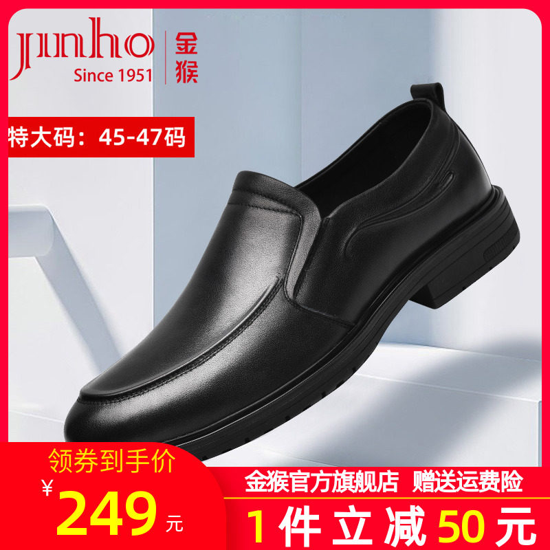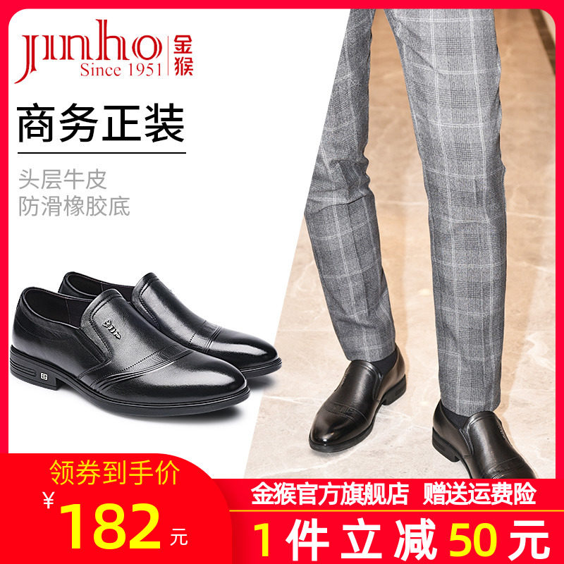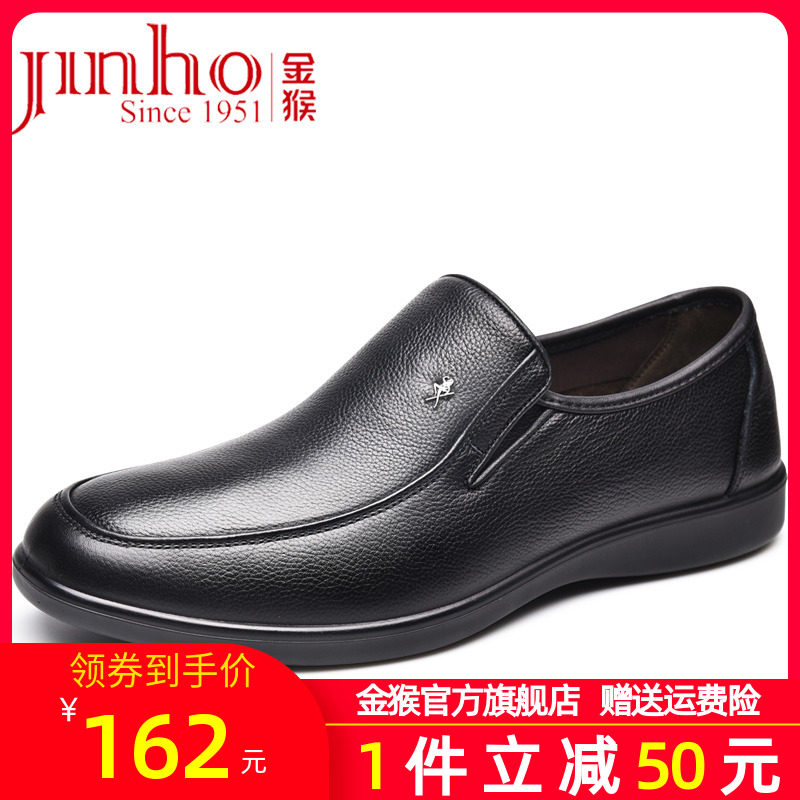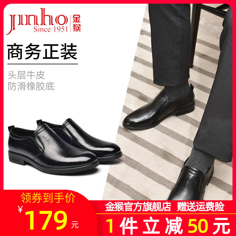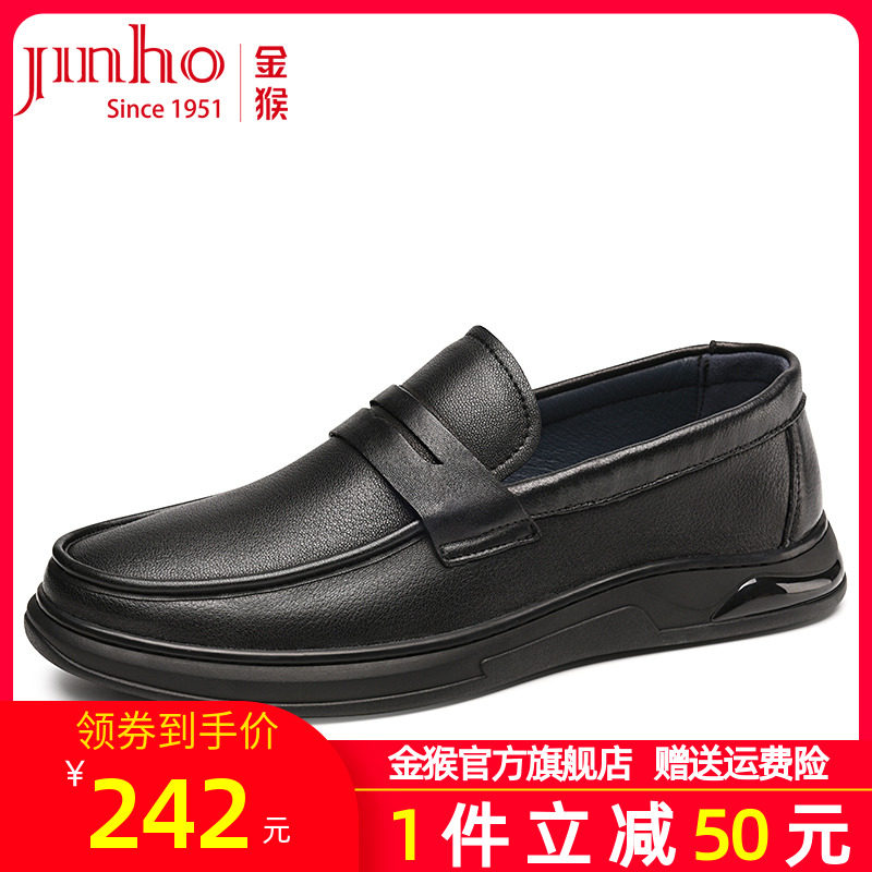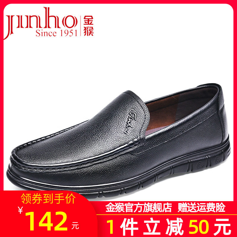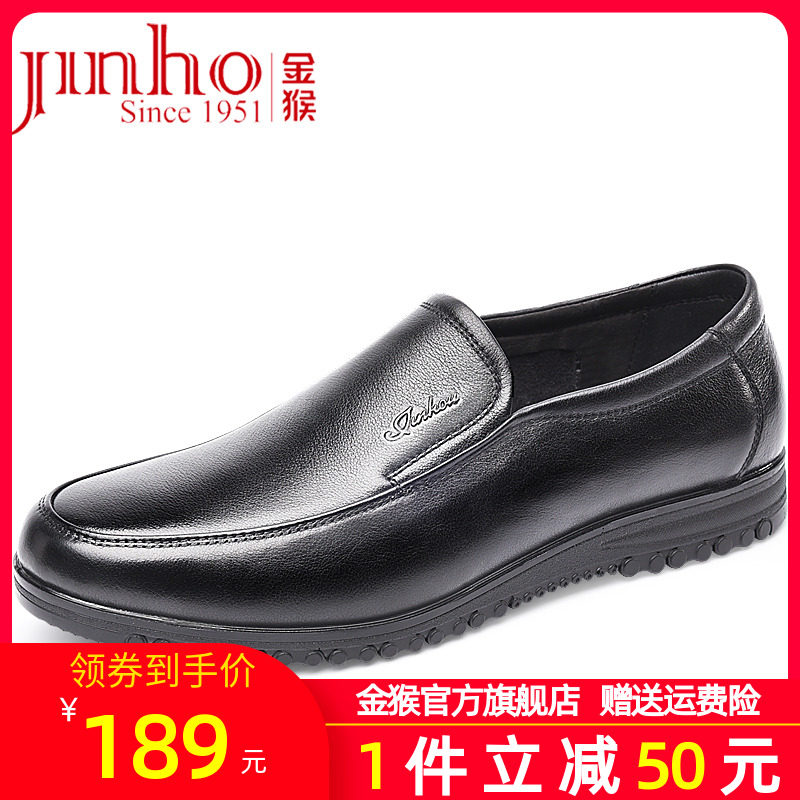 金猴官方旗舰店春秋加绒商务休闲男鞋子新款头层牛皮套脚皮鞋正品