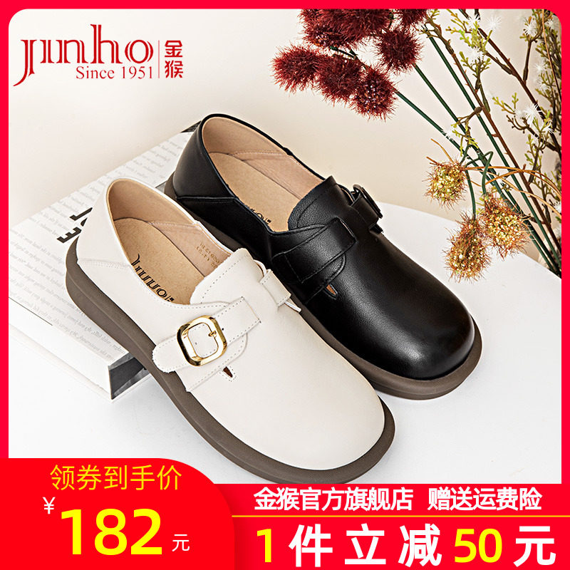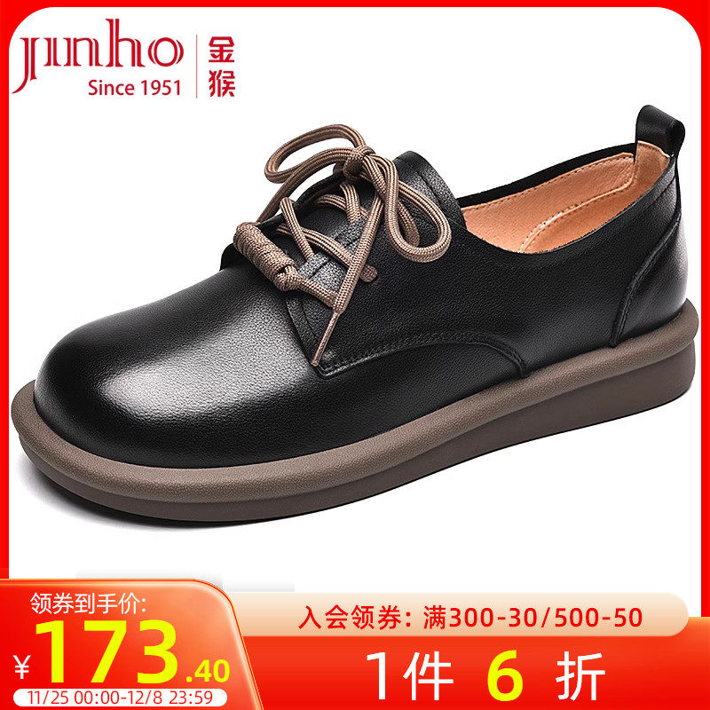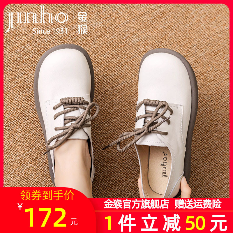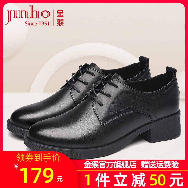 金猴官方旗舰2023春季新款工作软底低跟时尚配工装牛皮女士小皮鞋