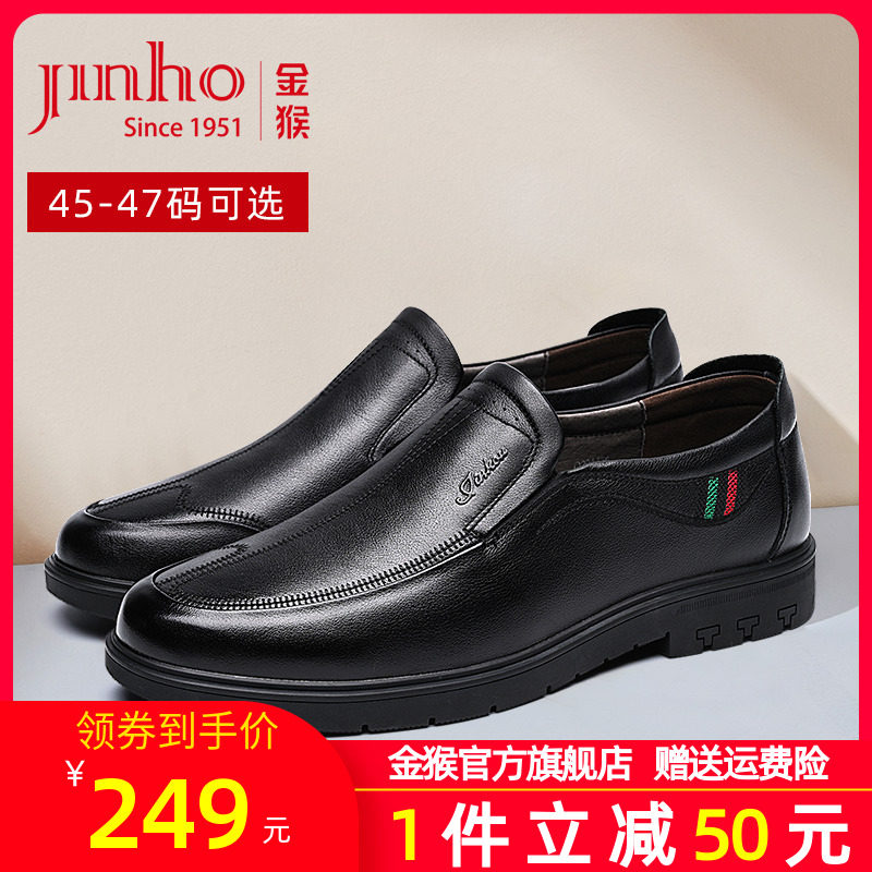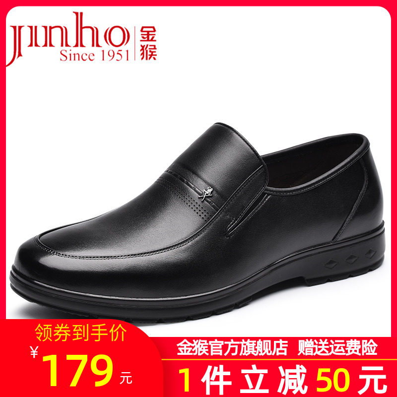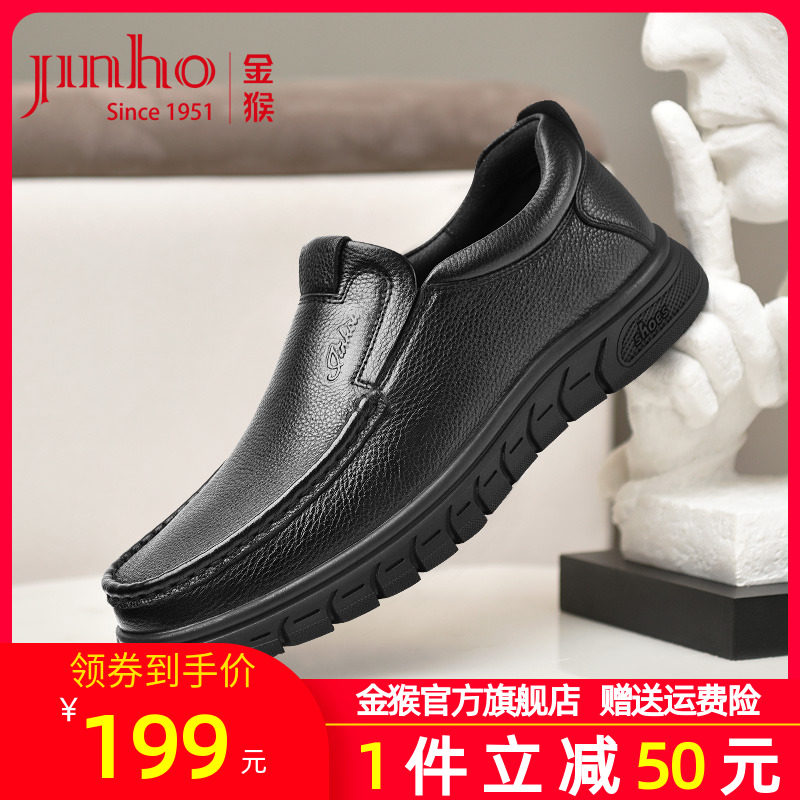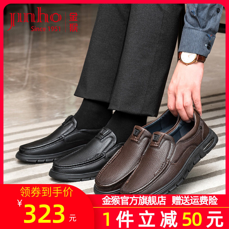 金猴官方旗舰皮鞋2023秋季新款真皮软底套脚牛皮中年爸爸男士皮鞋