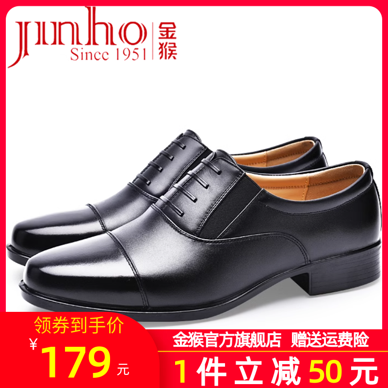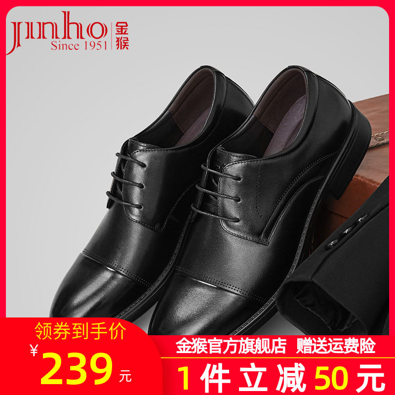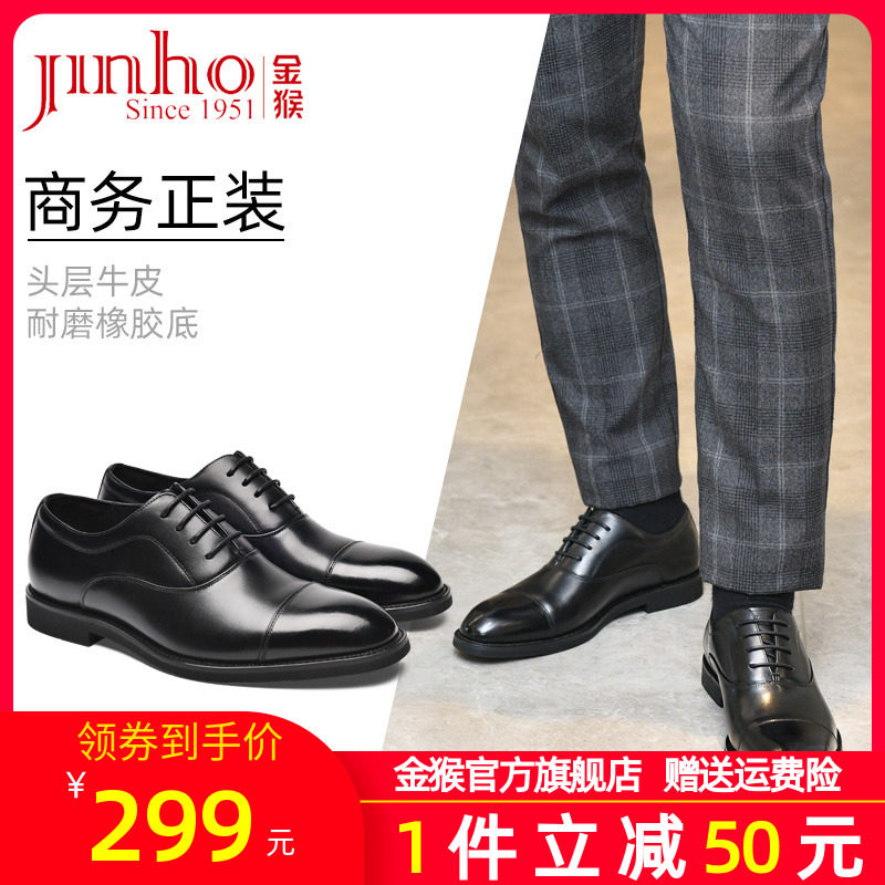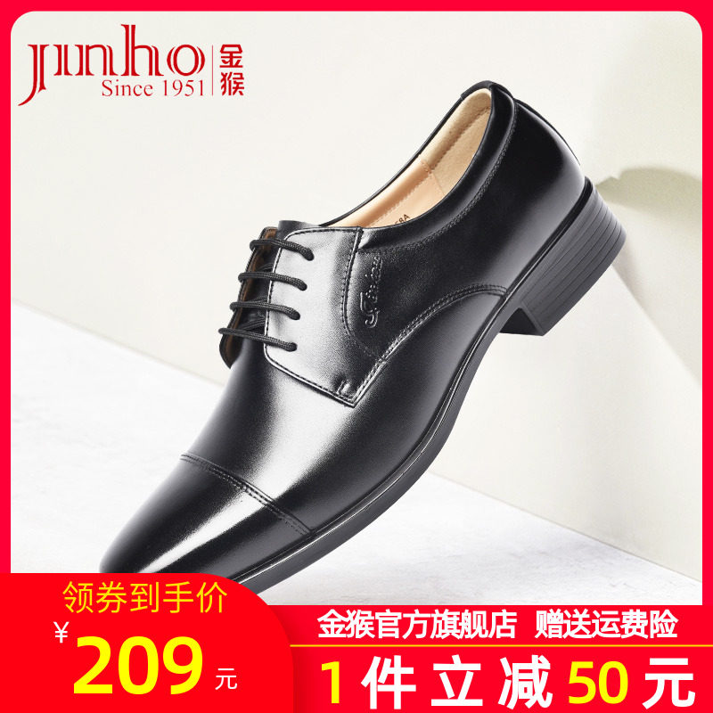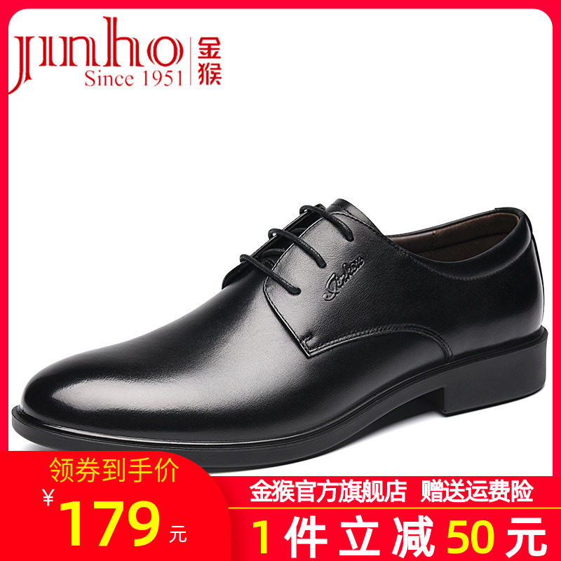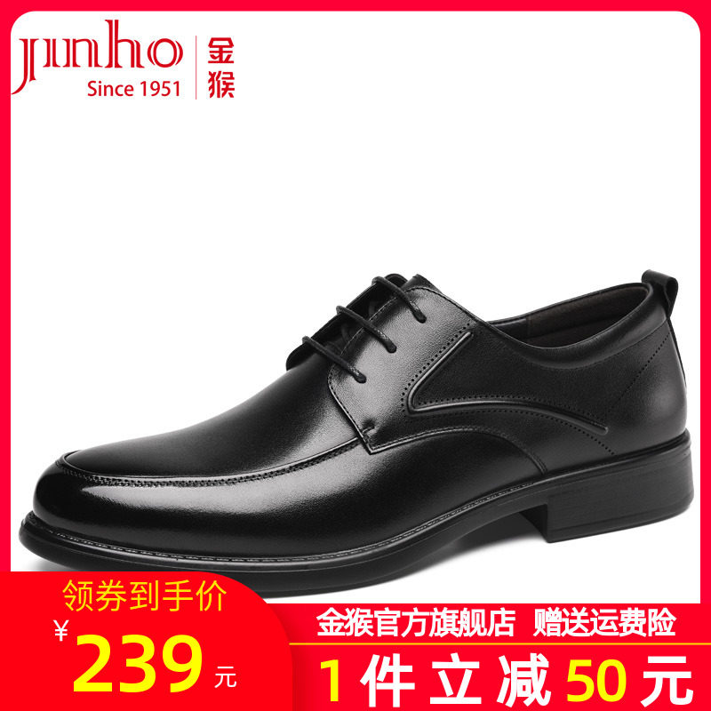 金猴官方旗舰店正品商务正装男鞋通勤真皮系带西装圆头英伦风皮鞋