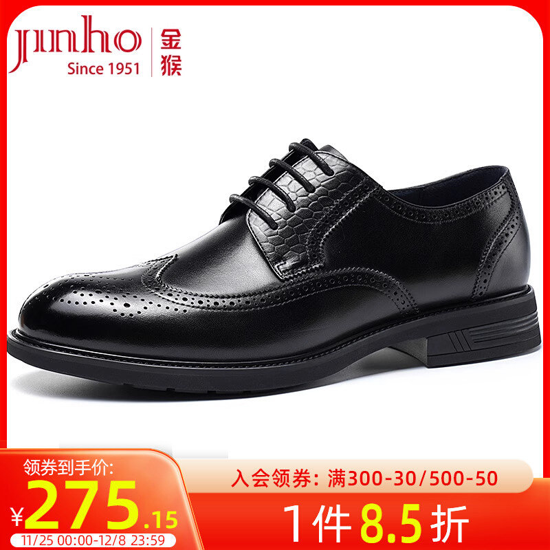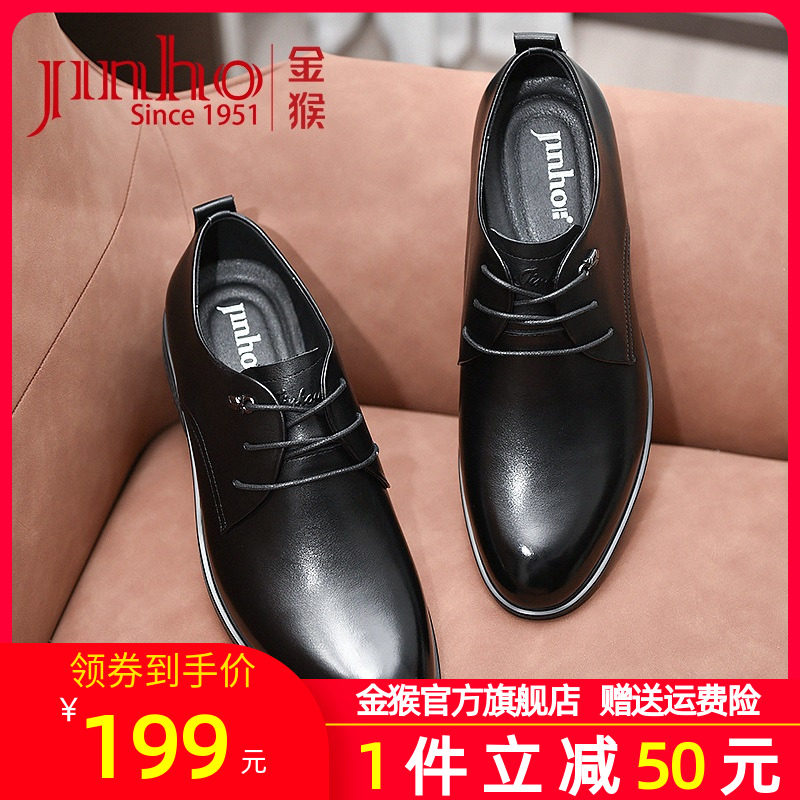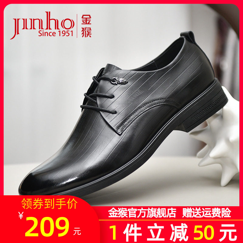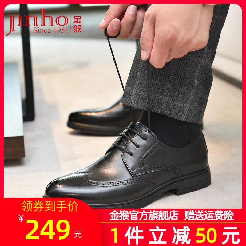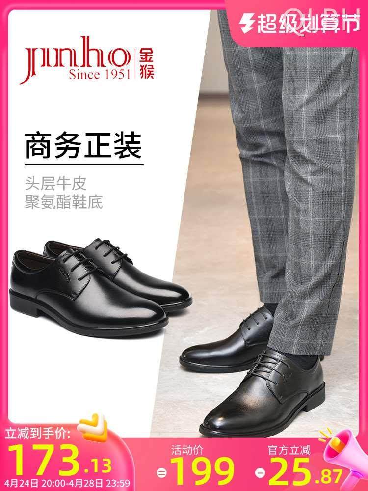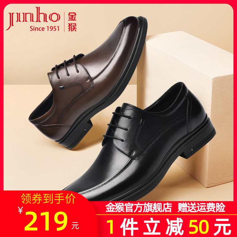 金猴官方旗舰店正品商务正装男鞋通勤真皮系带西装圆头英伦风皮鞋