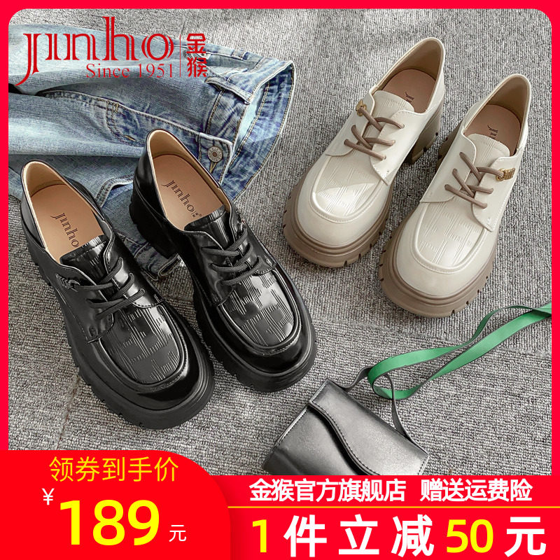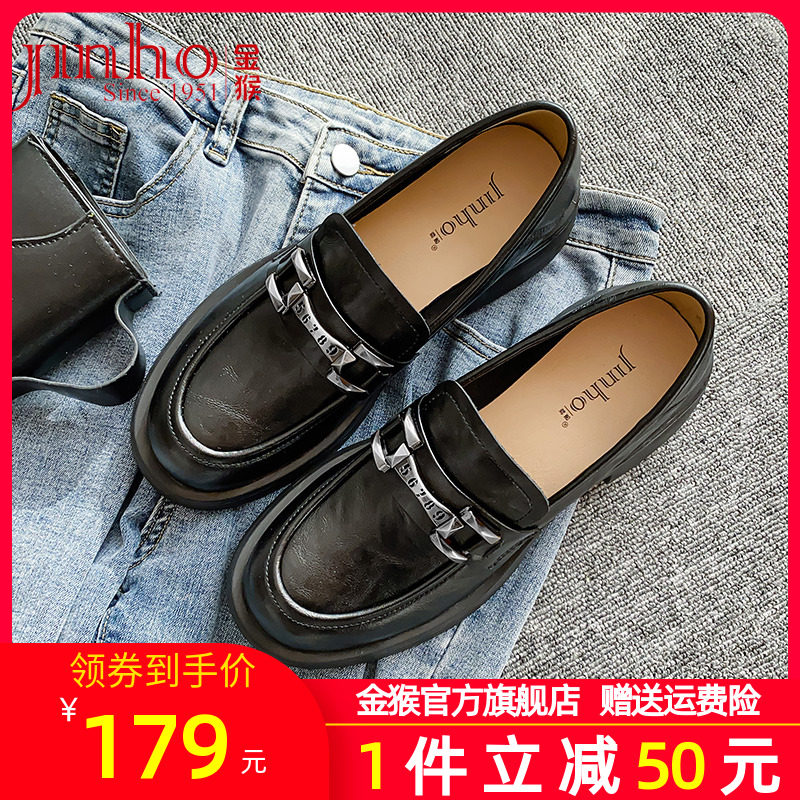金猴女鞋小皮鞋女秋季2023新款英伦风百搭森系厚底乐福鞋法式单鞋