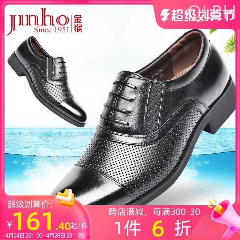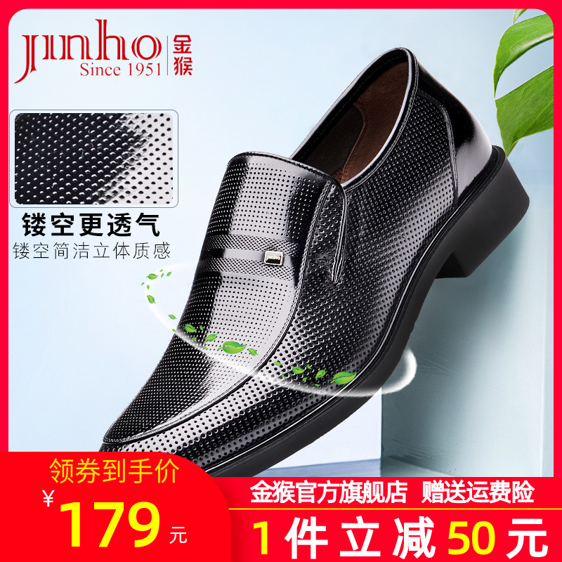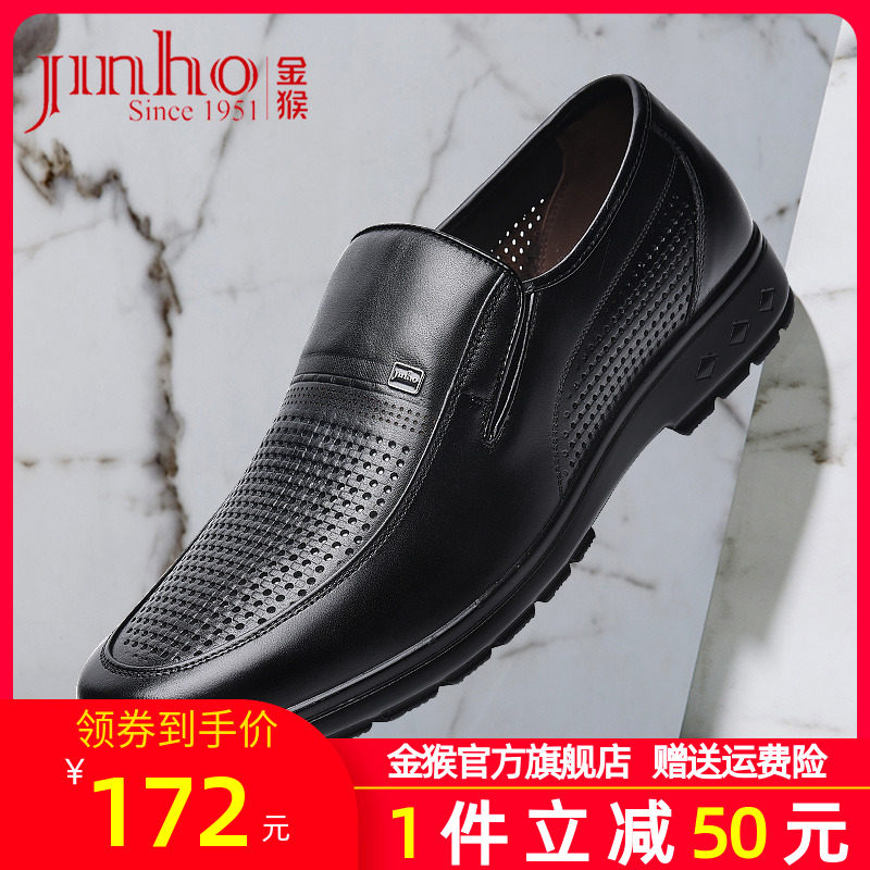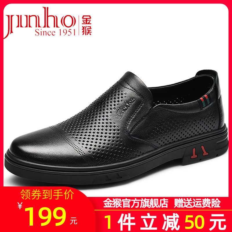 金猴官方旗舰店正品夏季镂空牛皮休闲皮鞋透气休闲鞋夏式凉男皮鞋