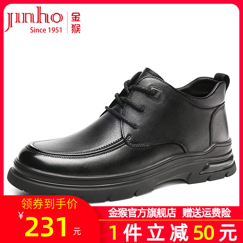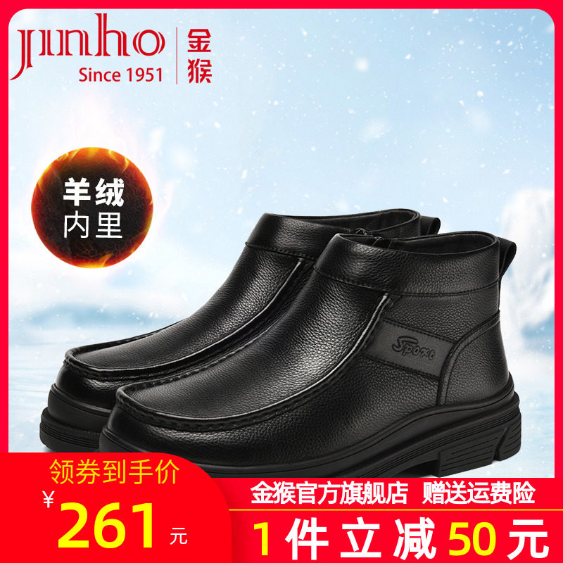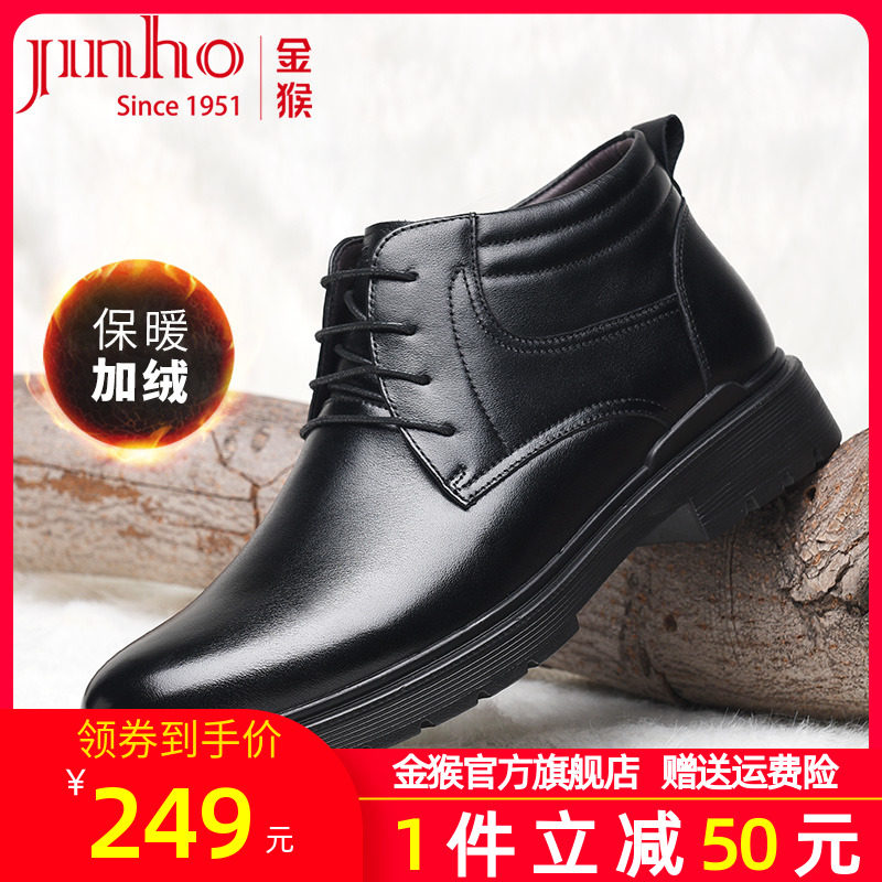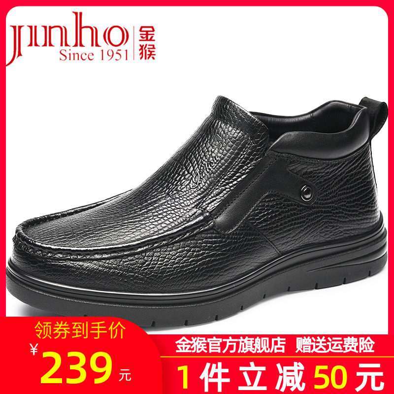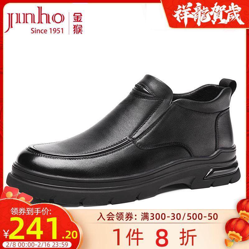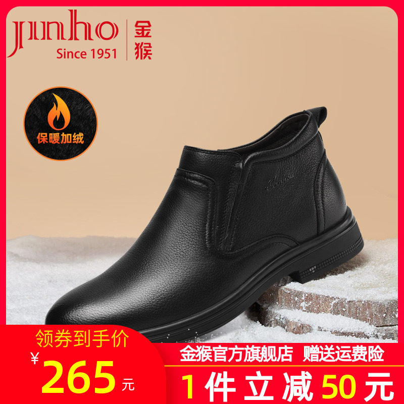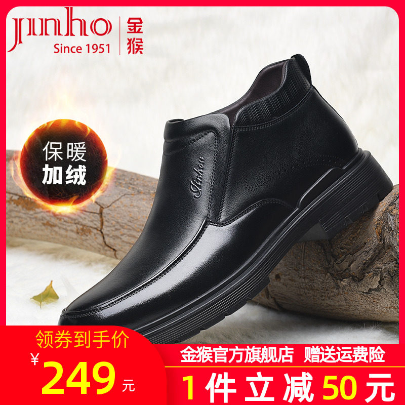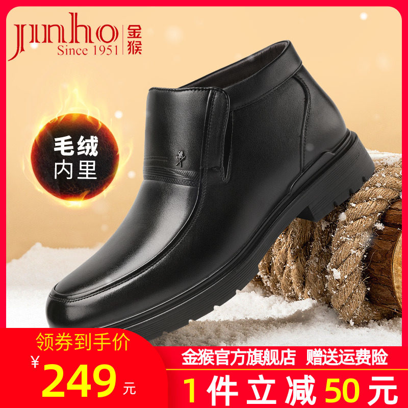 金猴官方旗舰店皮鞋男2023冬季新款保暖加绒厚底休闲男真皮大棉鞋