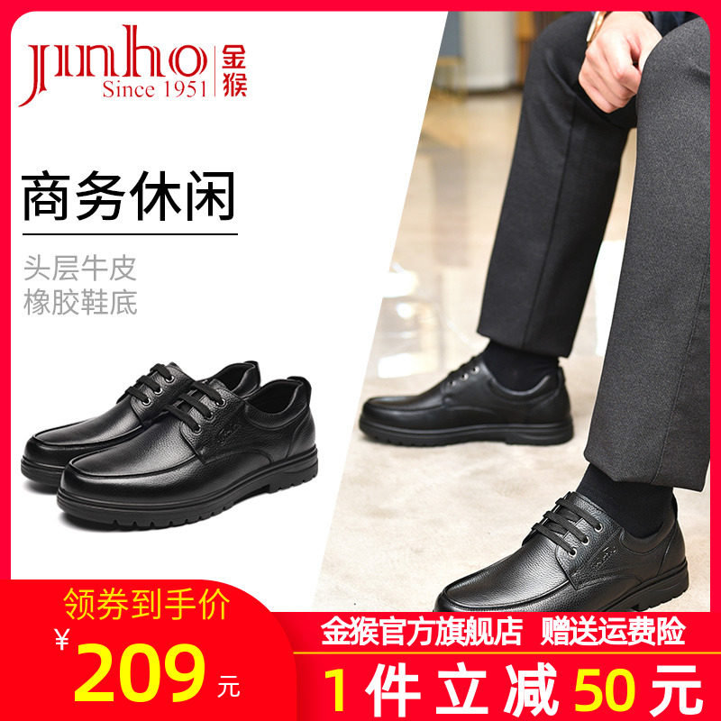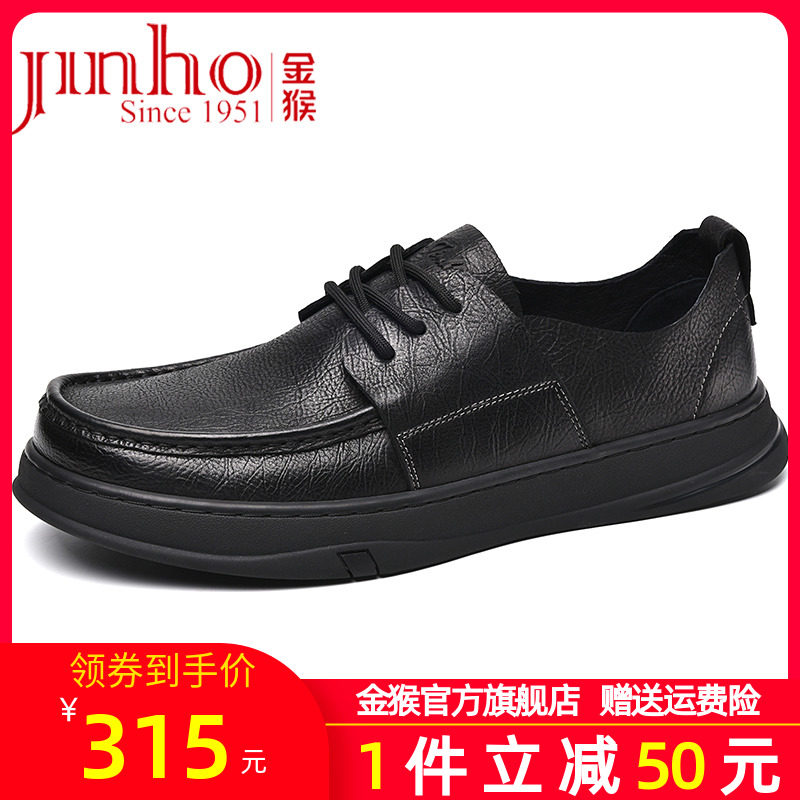 金猴官方旗舰店男士英伦黑色系带休闲鞋春季新款商务休闲皮鞋真皮