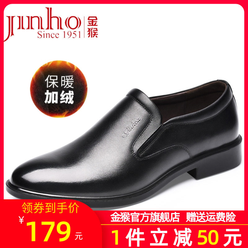 Jinhou金猴官方旗舰春秋加绒保暖三接头功勋商正装套脚正品男皮鞋