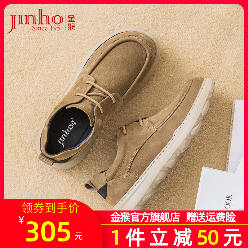 金猴工装皮鞋男2024春季新款牛皮复古百搭英伦风厚底大头男皮鞋