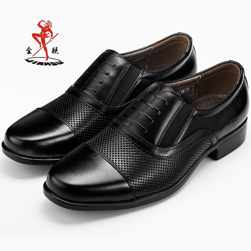 金猴官方旗舰商务男真皮平底软面软底皮鞋套脚镂空透气轻便男皮鞋
