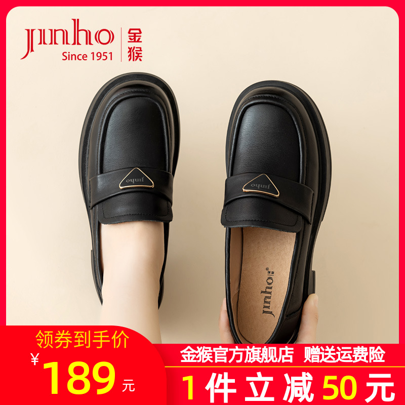 金猴官方旗舰店2023秋季新款黑色牛皮舒适不累脚英伦风女士小皮鞋