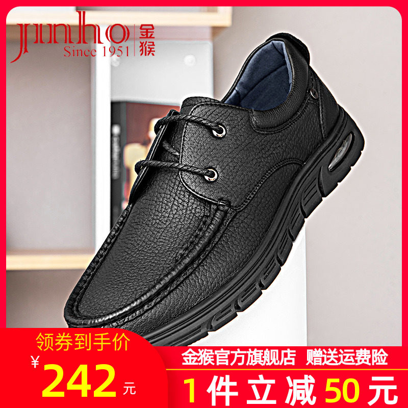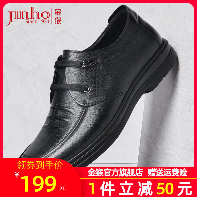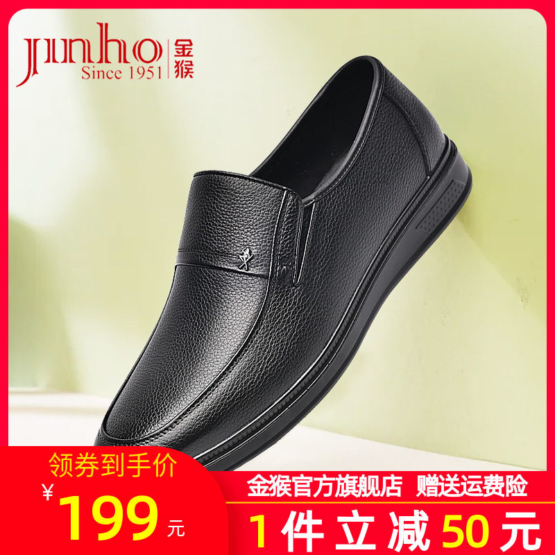 金猴官方旗舰店男2023春季新款牛皮黑色商务休闲真皮软底爸爸皮鞋