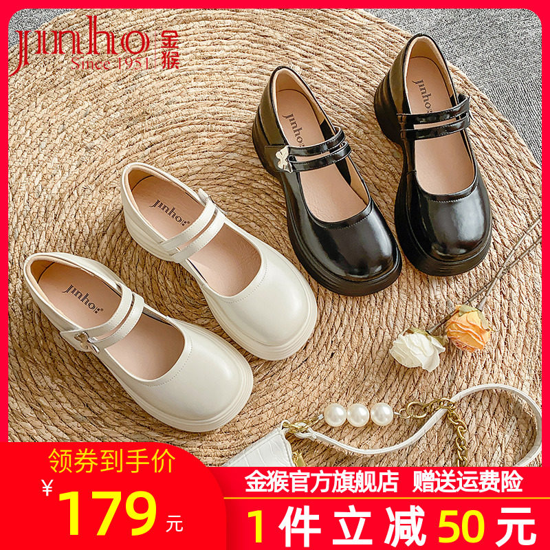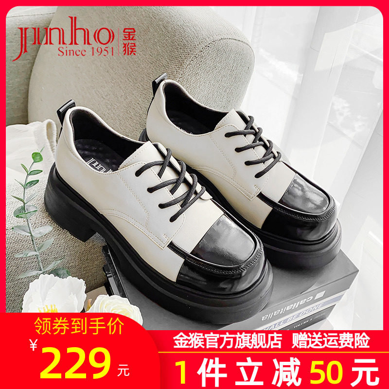 金猴女鞋2024春季新款牛皮英伦风乐福鞋玛丽珍厚底粗跟拼色小皮鞋