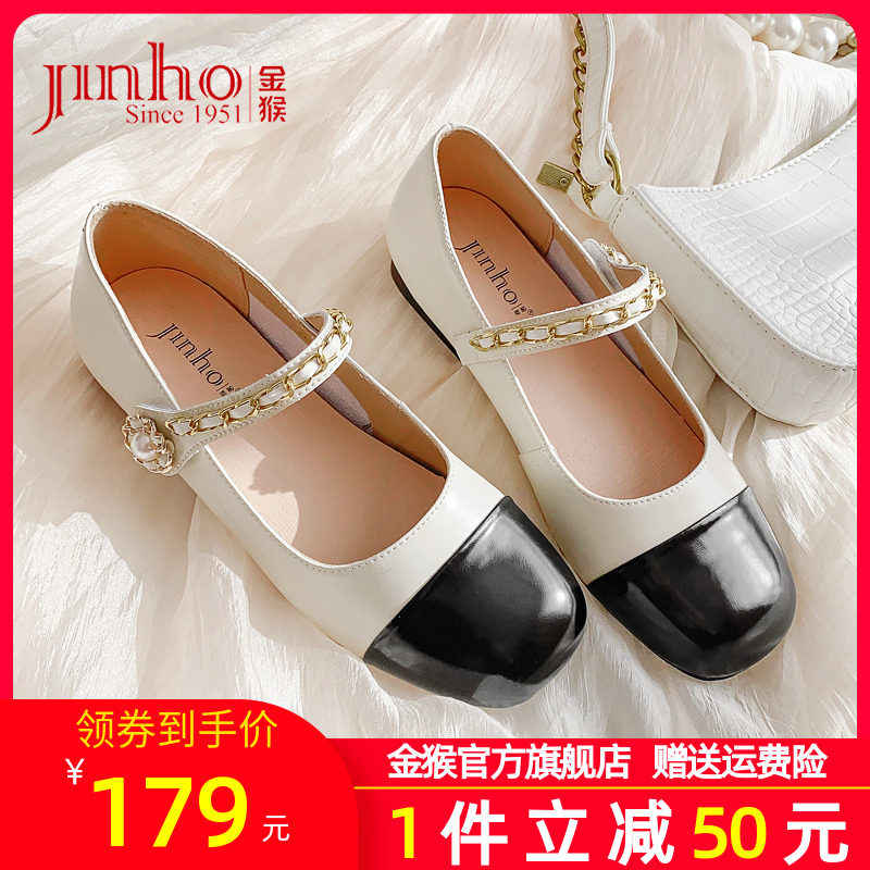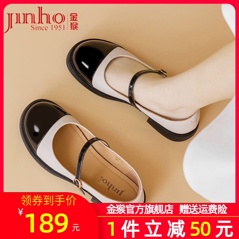 金猴玛丽珍鞋女2024春季新款平底圆头拼色小香风女单鞋小皮鞋女鞋
