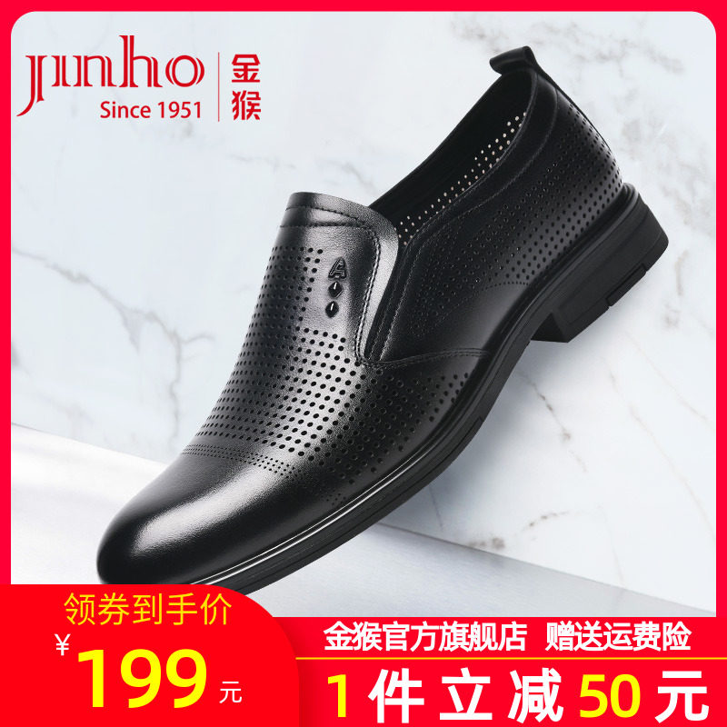 金猴官方旗舰夏季新款镂空套脚皮鞋男士商务休闲鞋子透气真皮凉鞋