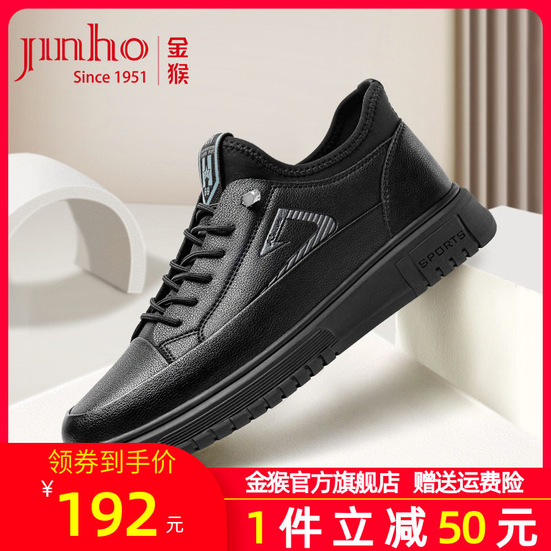 金猴官方旗舰店2023秋季新款正品板鞋低帮英伦风黑色软底男皮鞋