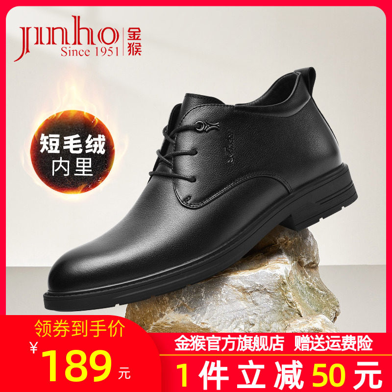 金猴官方旗舰冬季新款长毛绒休闲皮鞋商务正装鞋羊皮真皮男鞋正品
