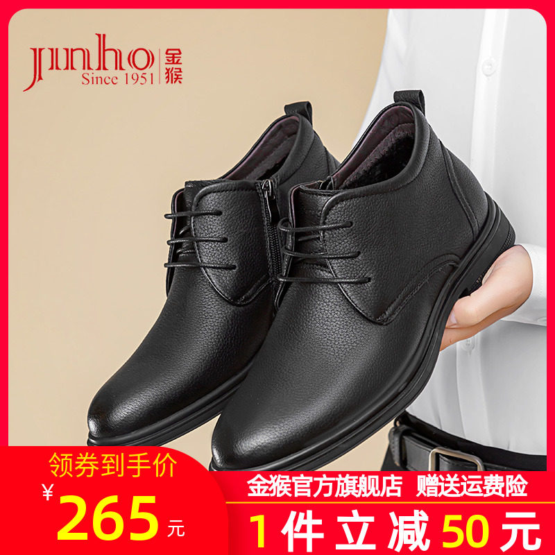 金猴官方旗舰大码2023冬季新款保暖加绒商务正装真皮男士二棉皮鞋