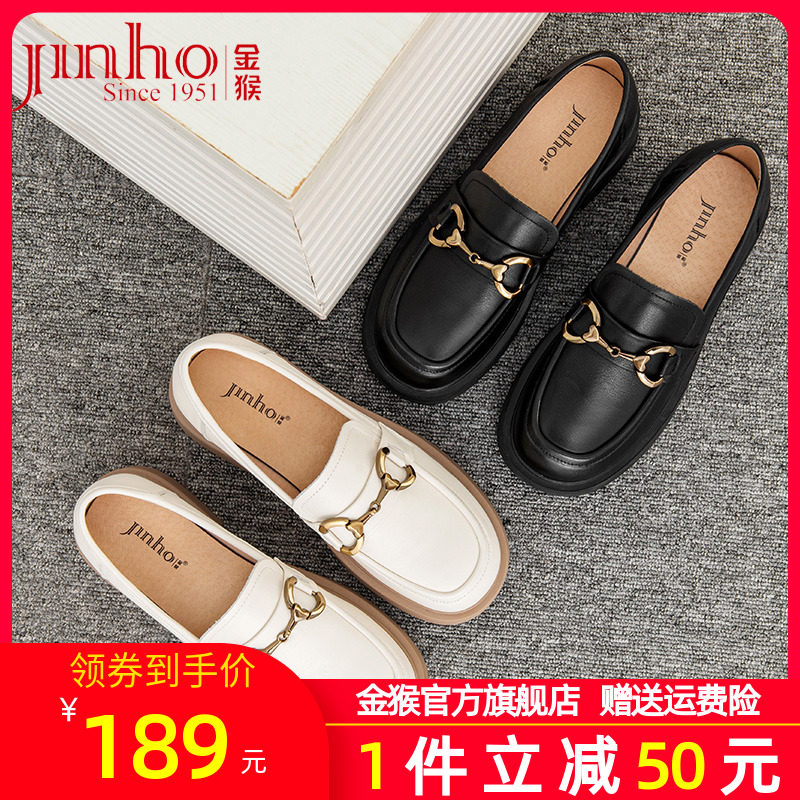 金猴女鞋2024年春季新款乐福鞋女士套脚小皮鞋女学院风厚底单鞋女