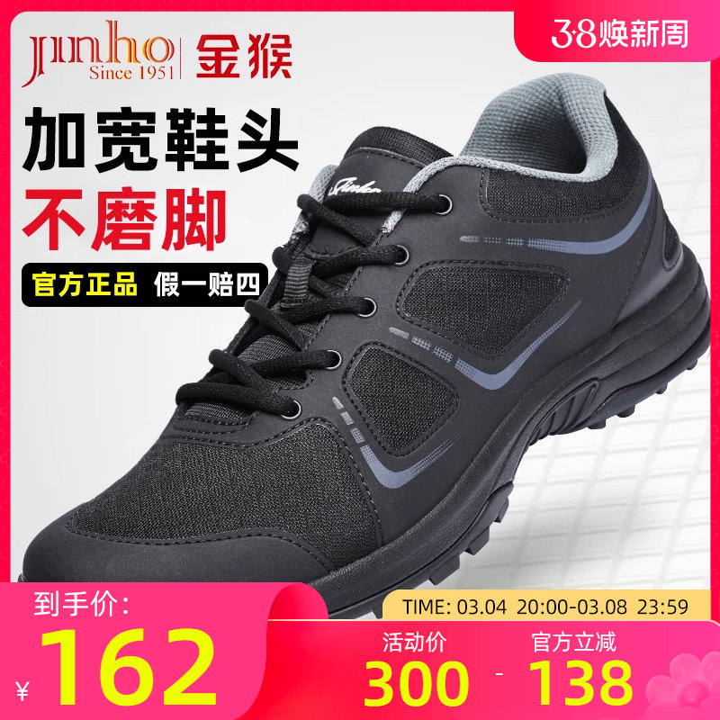 金猴作训鞋男网面跑鞋超轻运动鞋胶解放鞋冬款加绒黑色男款训练鞋