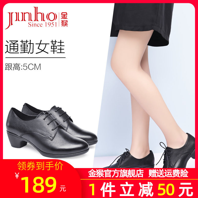 金猴皮鞋官方旗舰店正品新款女士系带职业正装通勤鞋5cm高跟鞋粗