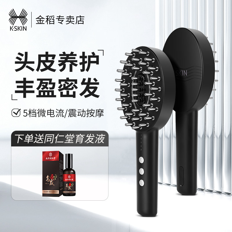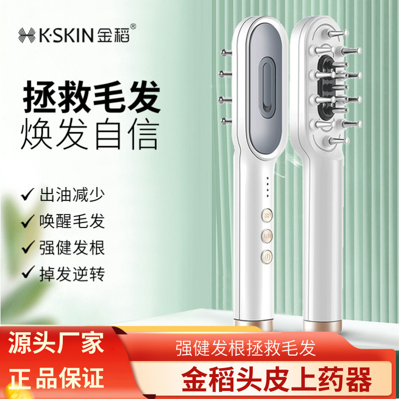 金稻头皮上药器红蓝光微电流按摩梳滚轮导液梳健发梳黑科技KD3802