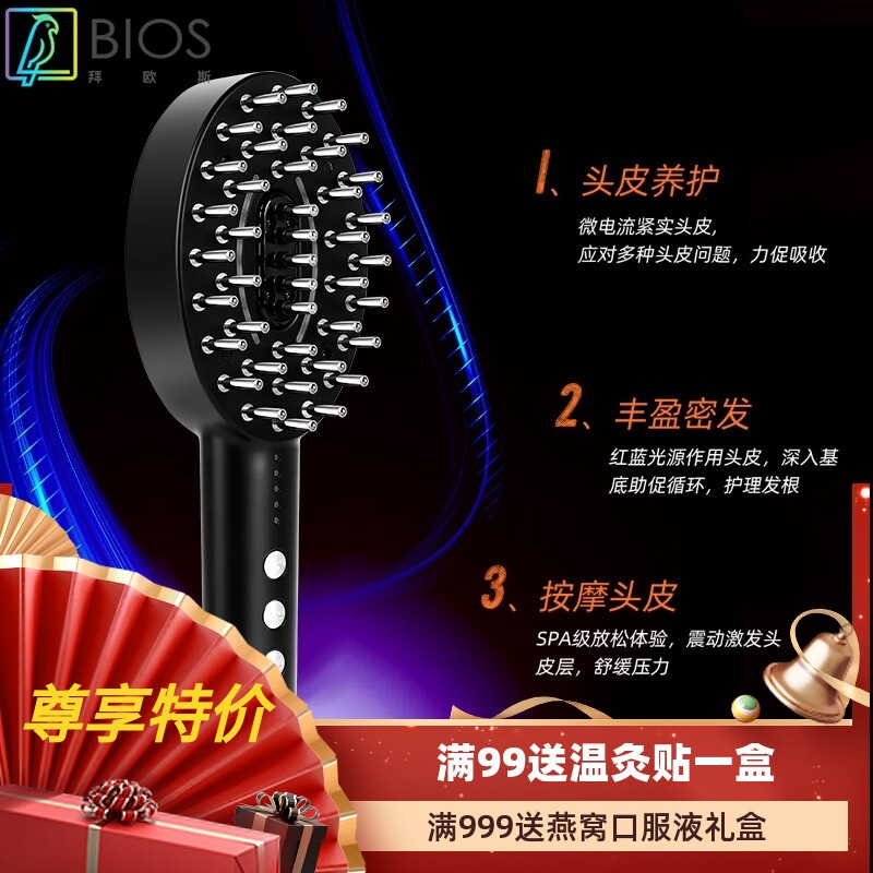 金稻光束健发梳微电流多功能按摩仪器护发梳按摩梳头皮彩光发际线