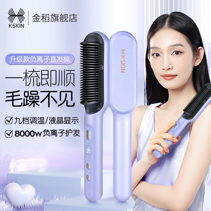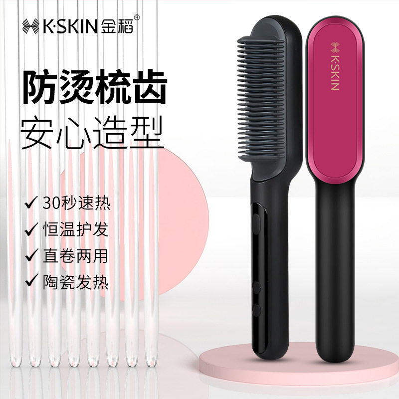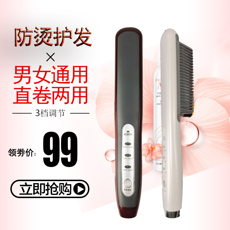 金稻直发梳KD380K负离子直卷两用不伤发家用卷发棒夹板一梳直发器