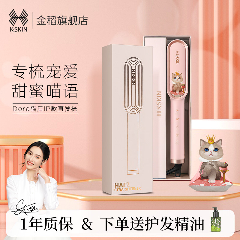 金稻负离子直发梳直发卷发棒两用懒人不伤发内扣大卷美发猫王猫后
