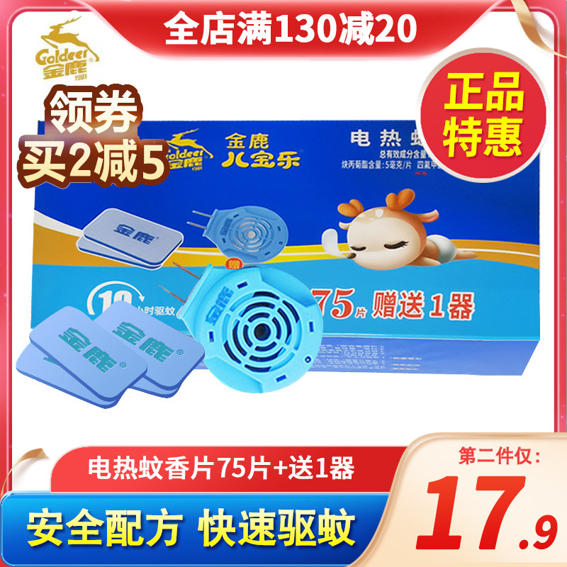 金鹿电热蚊香片75片送加热器套装插电式家用驱蚊防蚊灭蚊片无味型