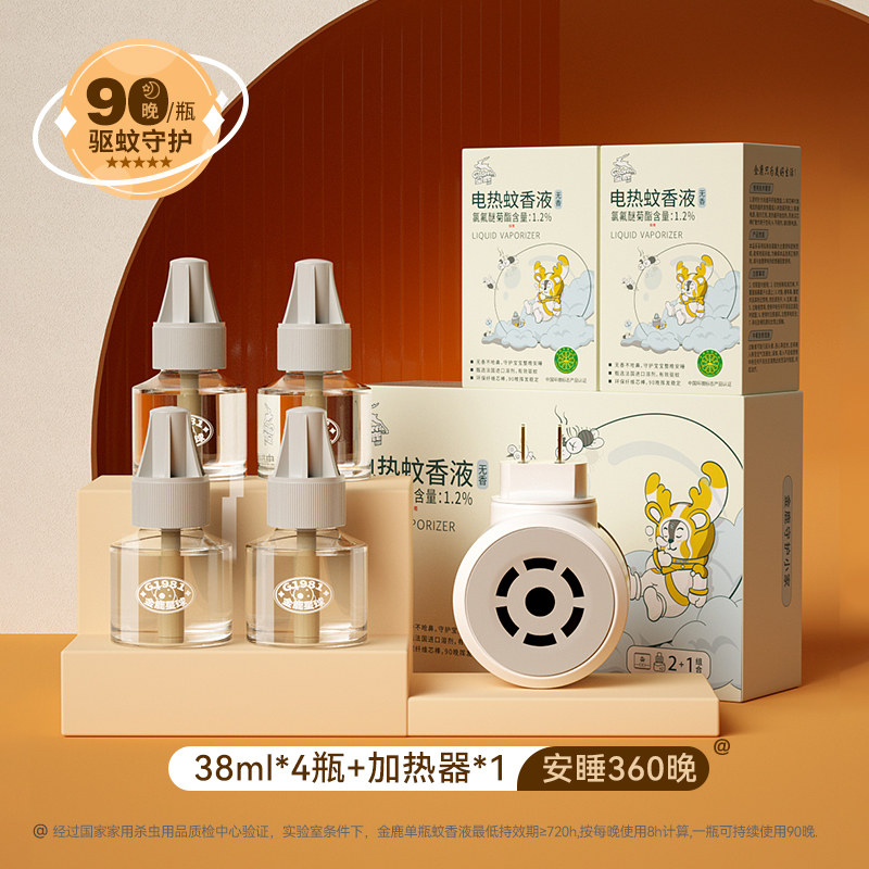 金鹿电热蚊香液4瓶+加热器180晚 无味婴儿孕妇无香家用驱蚊灭蚊液