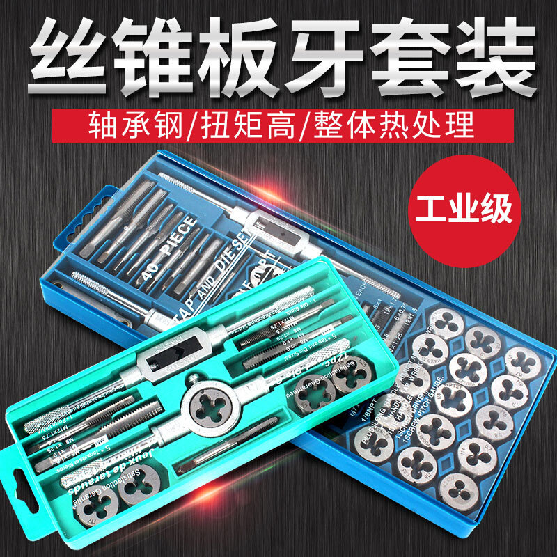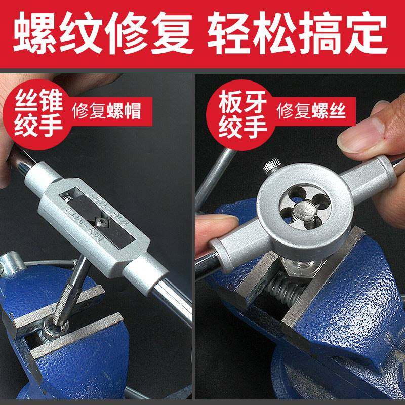 钢拓丝锥板牙套装公制螺丝螺纹修复工具手用丝攻扳手牙攻绞手套装