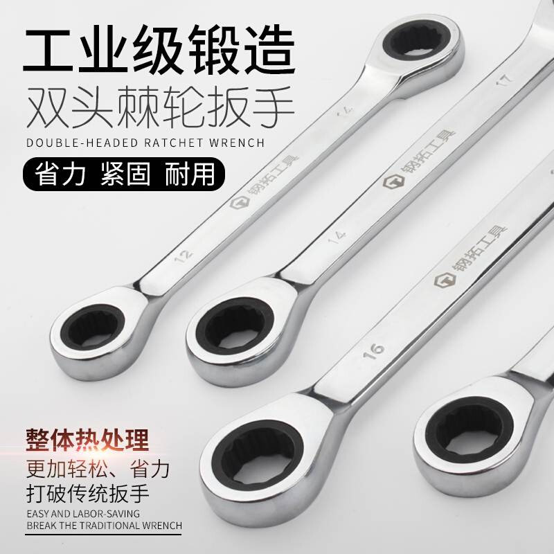 钢拓活动棘轮扳手快速扳手双头双向梅花开口汽修活头两用扳手工具