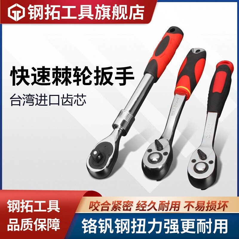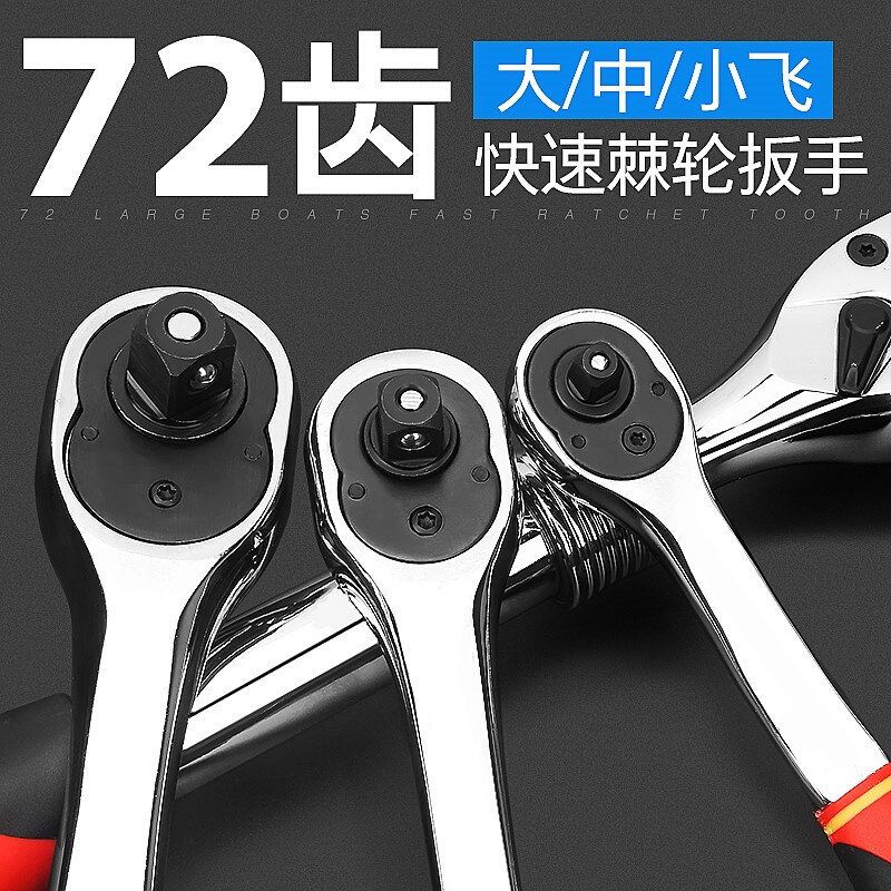 钢拓快速棘轮扳手大中小飞72齿双向扭力扳手修车工具大全套筒扳手