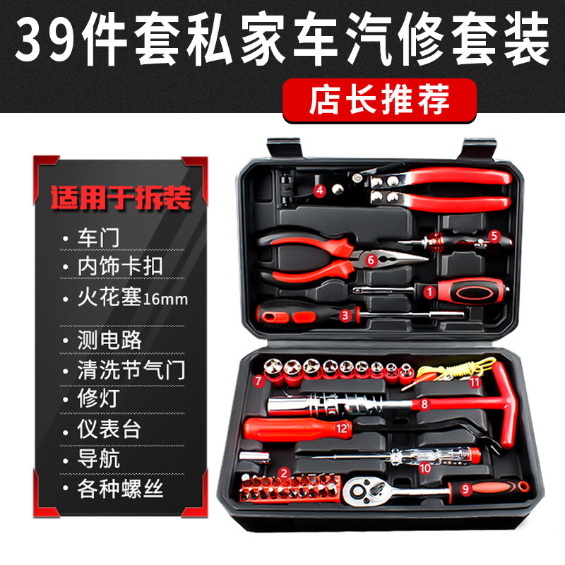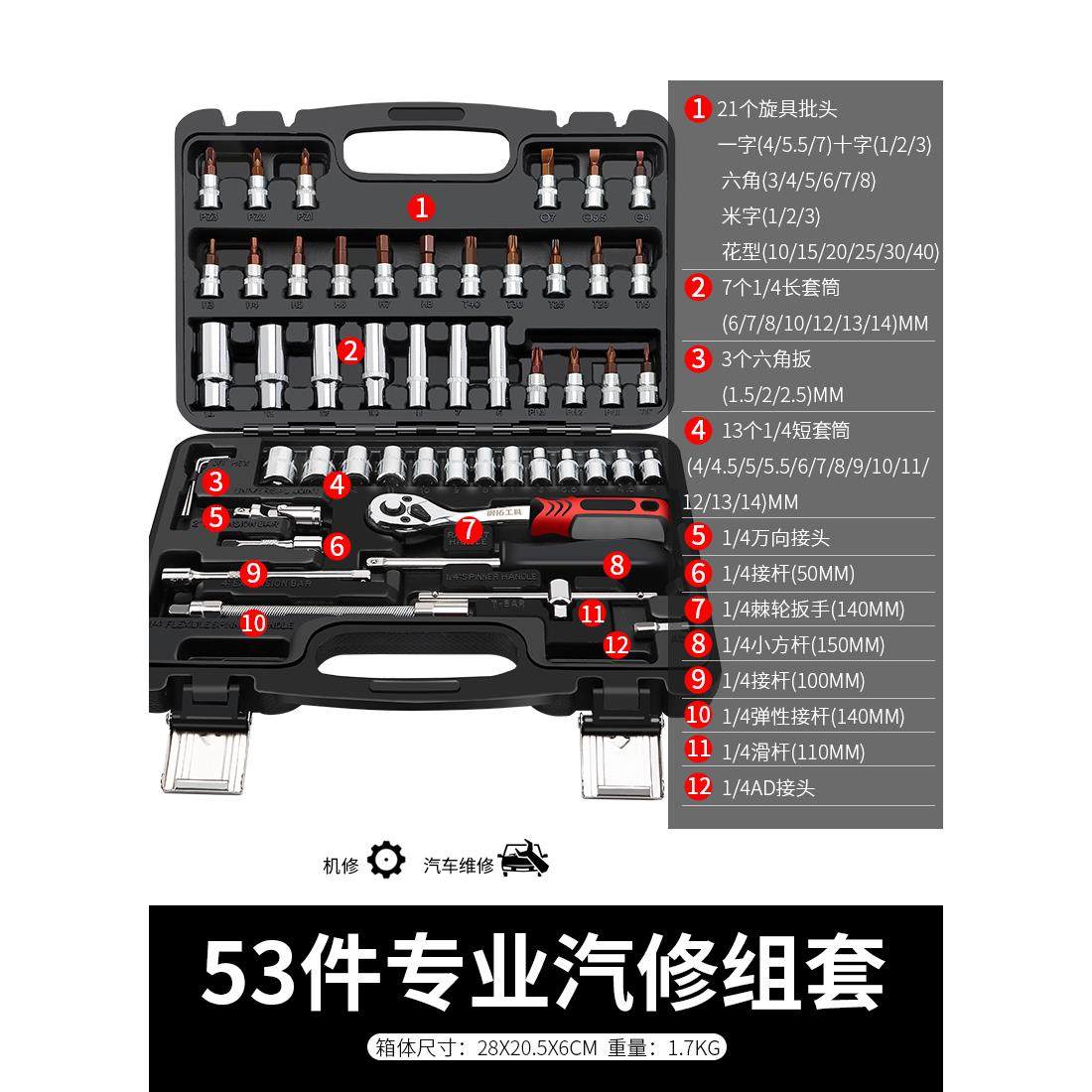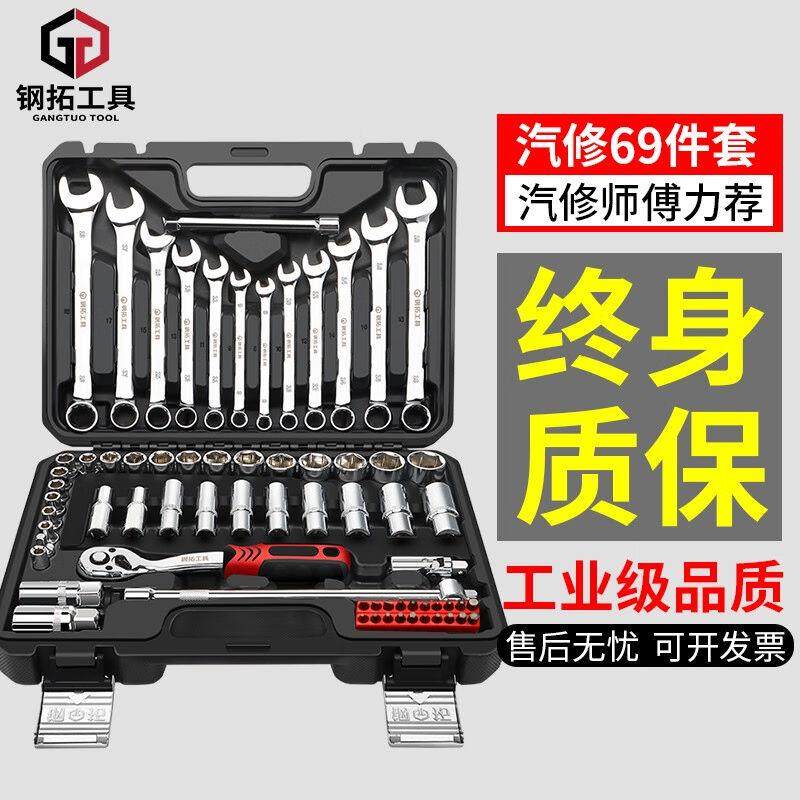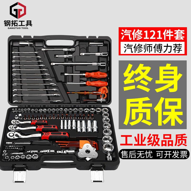 钢拓汽修工具套装多功能套筒棘轮扳手工具箱套装汽车修车维修五金