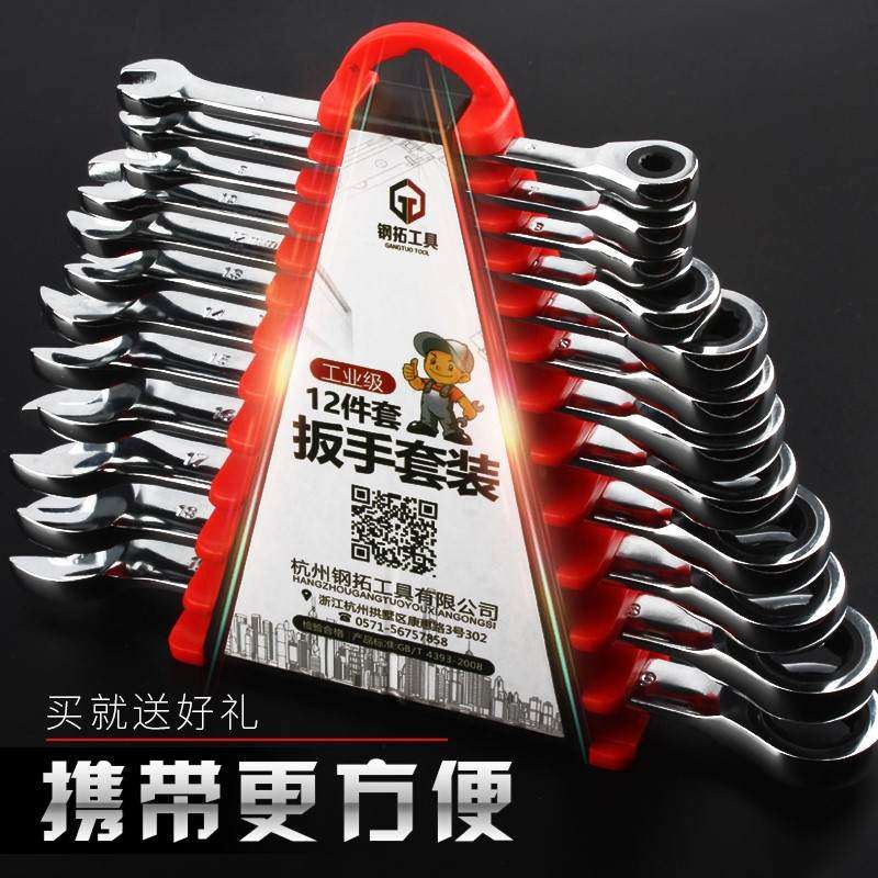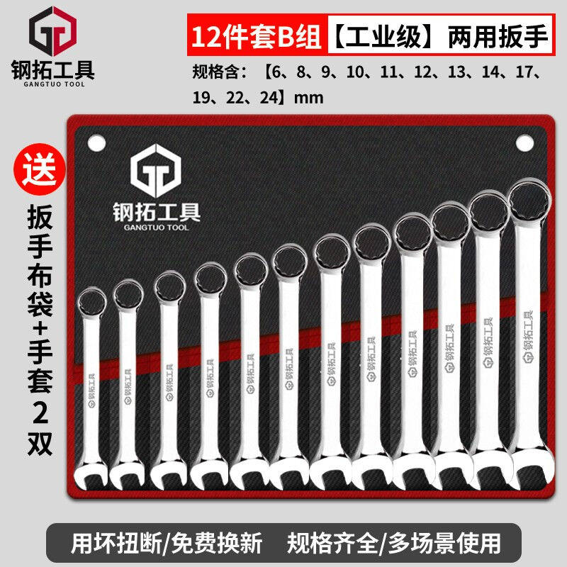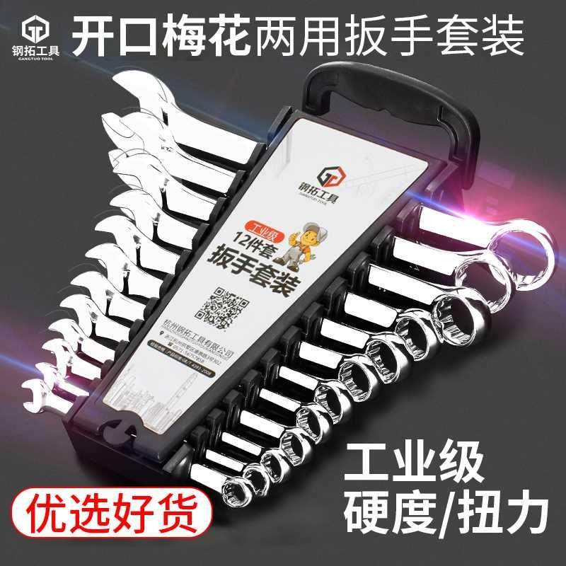 钢拓梅花开口扳手工具套装一套棘轮两用五金板子工具大全扳手套装