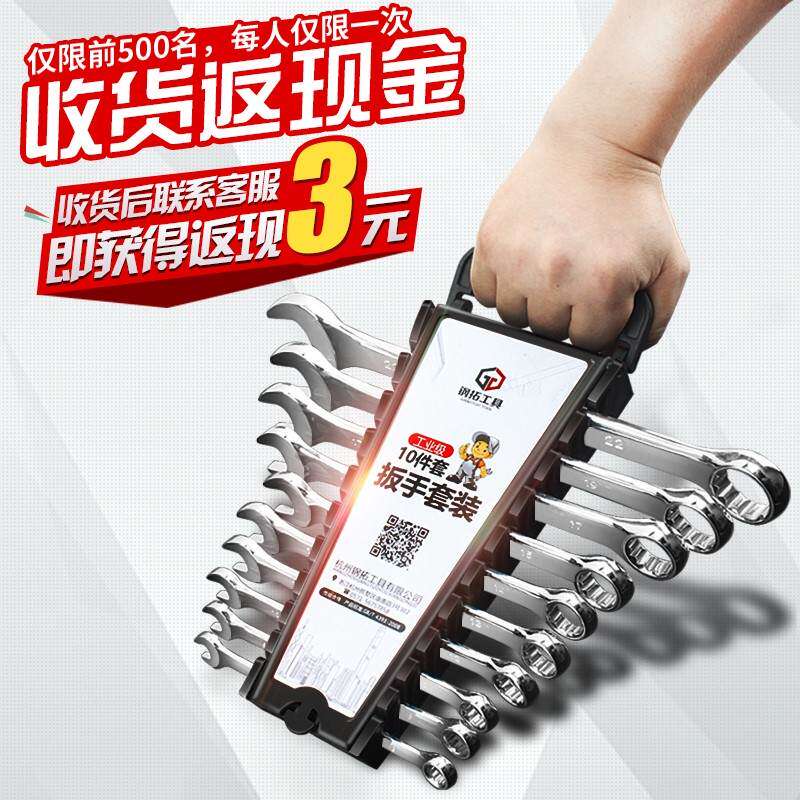 钢拓开口梅花扳手工具套装6-32mm梅开两用扳手布袋套装省力双头呆