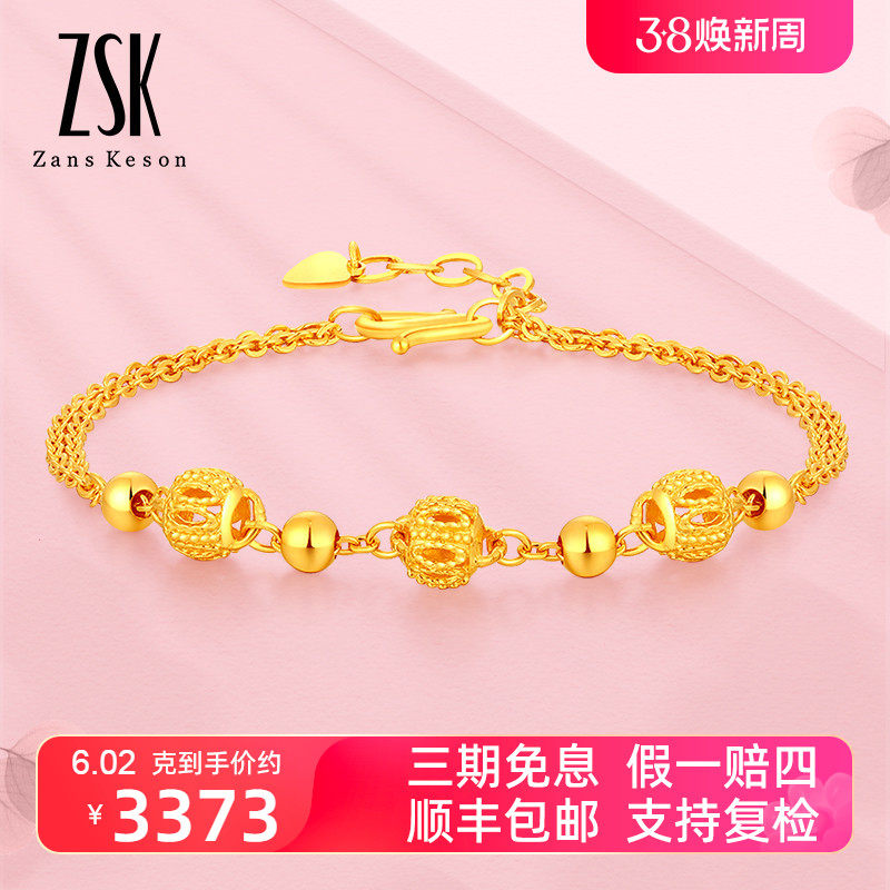 ZSK珠宝 黄金手链足金999十字链串车花镂空秀球珠手链(工费150)
