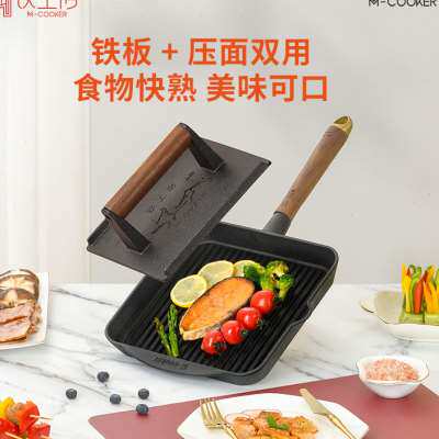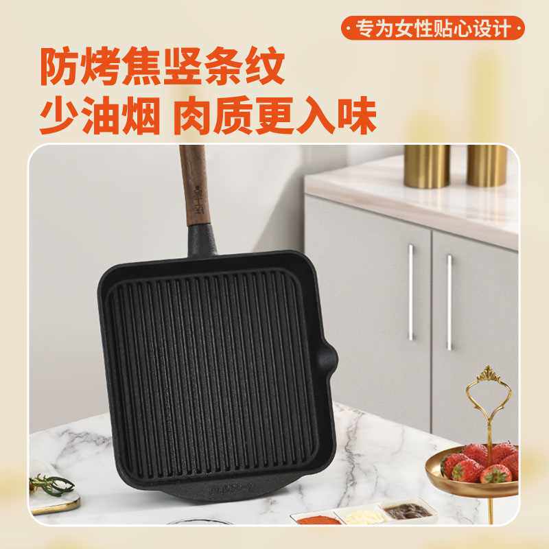 铁工房铸铁牛排煎锅专用条纹家用平底锅电磁炉专业煎牛排锅不粘锅