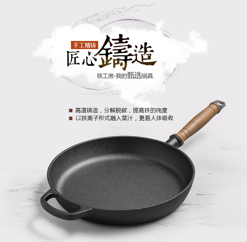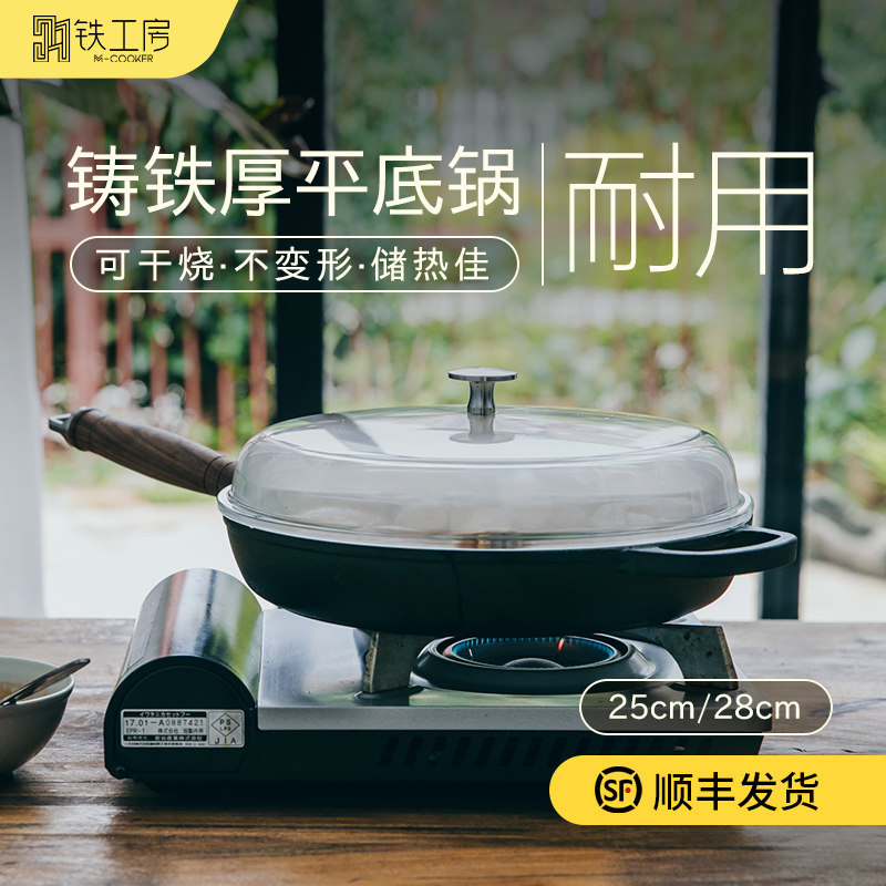 铁工房加深平底锅煎锅烙饼锅不粘锅铸铁锅无涂层电磁炉燃气灶适用