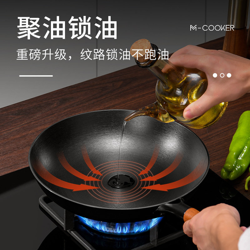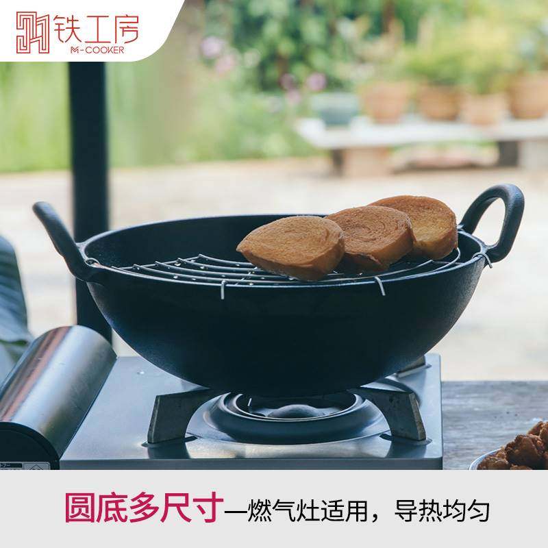 铁工房铁锅铸铁炒锅家用老式无涂层生铁炒菜锅不粘电磁炉燃气适用