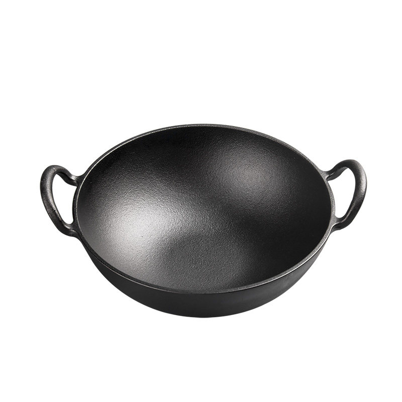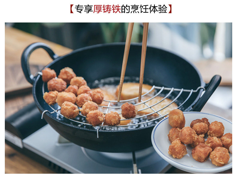 铁工房铁锅电磁炉炒菜锅家用老式无涂层生铁锅不粘锅双耳铸铁锅小