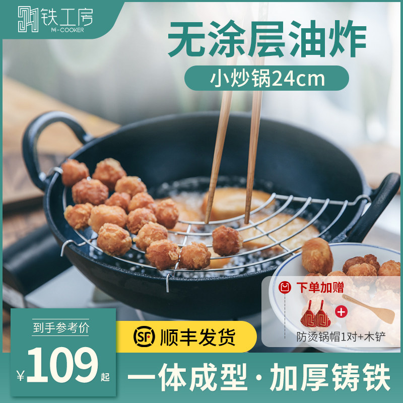 铁工房铁锅炒菜锅无涂层铸铁平底炒锅家用不粘锅轻便电磁炉燃气灶