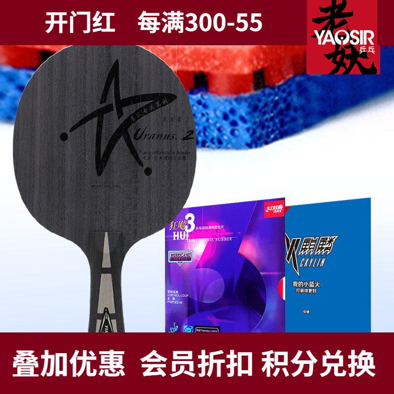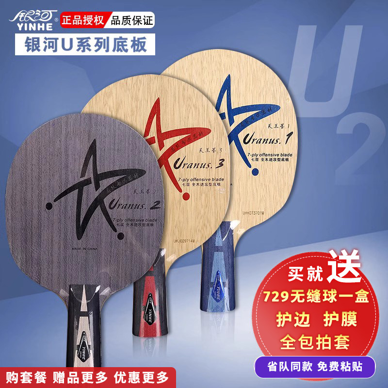 银河U2乒乓球拍底板天王星U-2七层纯木球拍快攻弧圈手工粘拍套餐
