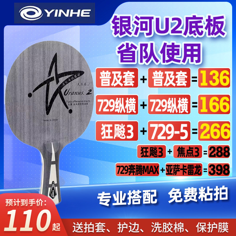 【粘拍】银河 U2乒乓球底板套餐装【729劲速ES 纵横普及套】球拍