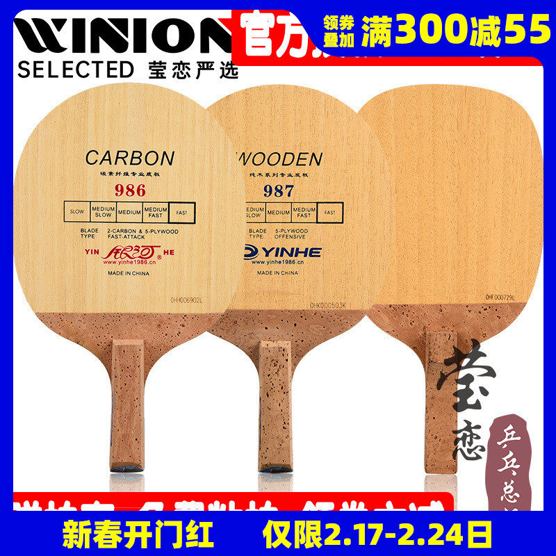 【莹恋】银河韩式碳素986 纯木987 反转式989 ppq乒乓球底板球拍
