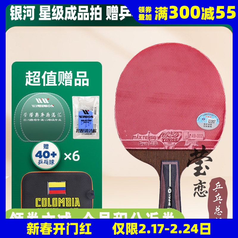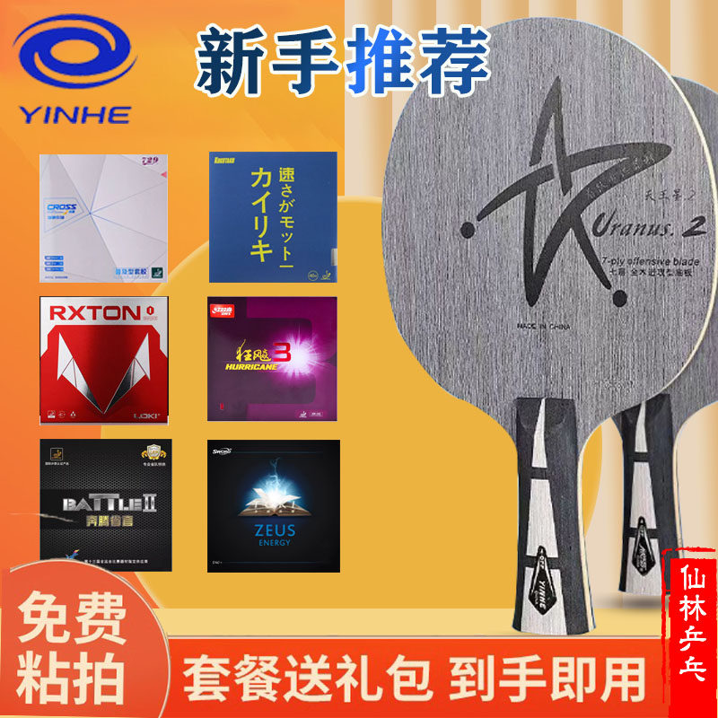银河U2粘拍套餐乒乓球拍胶皮底板天王星7层纯木初学专业横直板DIY