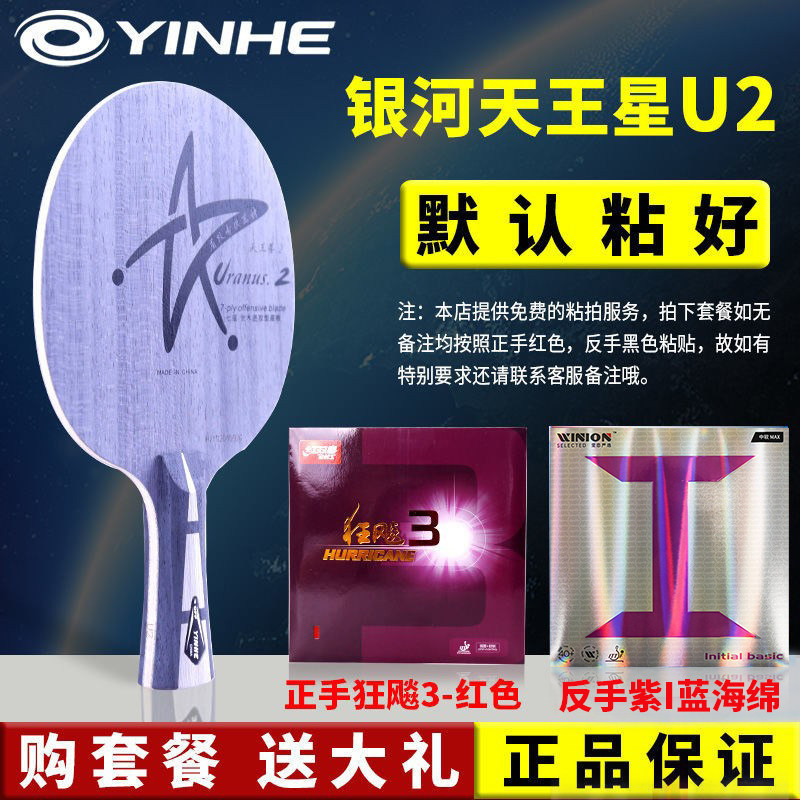 银河U2乒乓球拍底板天王星U-2七层纯木球拍快攻弧圈手工粘拍套餐