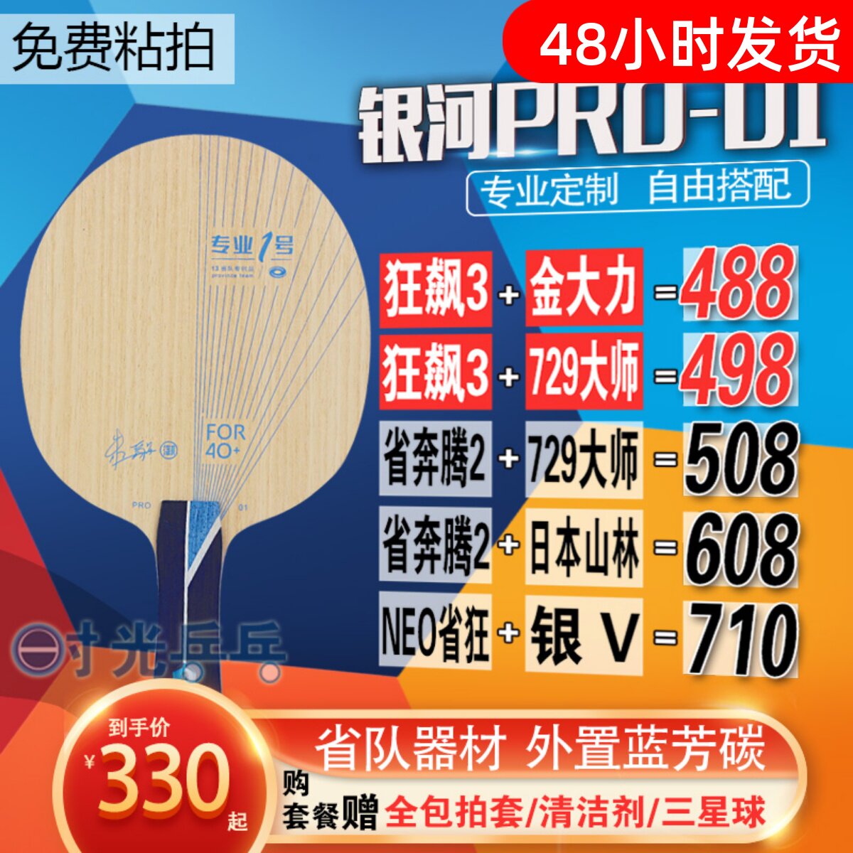银河专业一号乒乓球底板碳素ALC外置蓝芳碳1号pro01套餐乒乓球拍